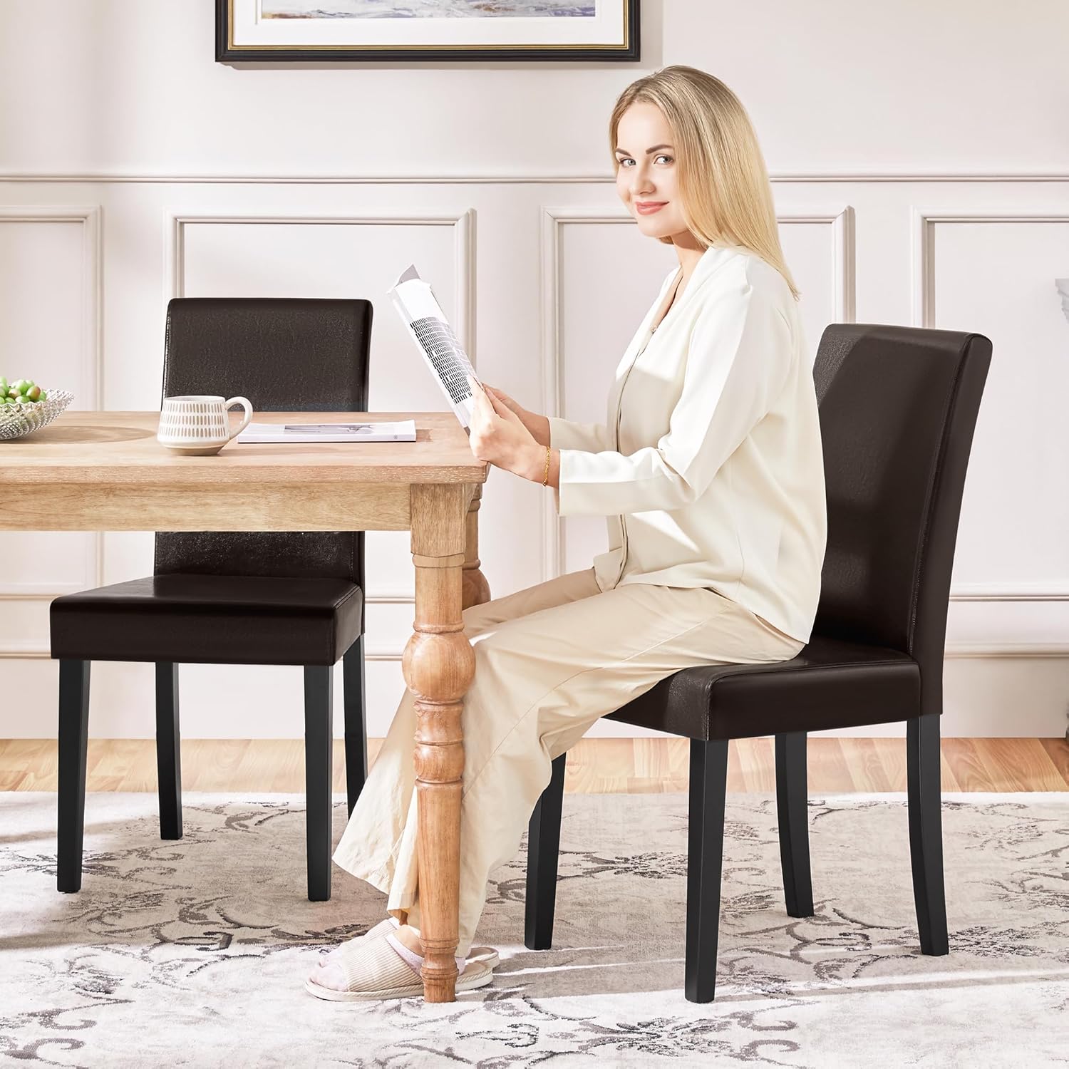 - Sturdy and Durable: The padded dining chairs are built with a solid structure. Each chair can hold up to 300 lb. The upgraded overall wooden frame gives you strong support