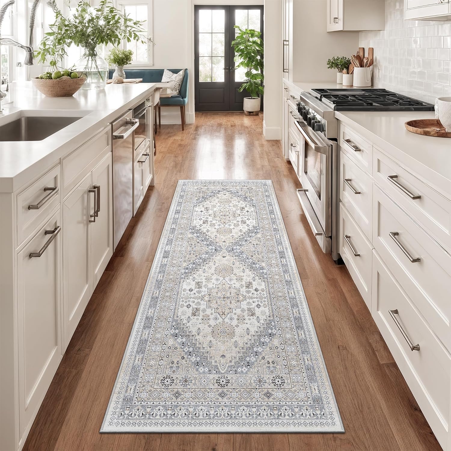 zesthome Runner Rug 2x5 - Stain Resistant Machine Washable Rug, Non Slip Vintage Hallway Runner Rugs, Low Pile Lightweight Runners for Kitchen, Entryway and Corridor
