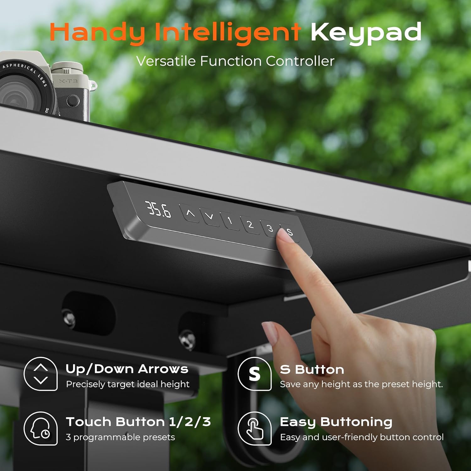 - 【Multi-Function Intelligent Keypad】Operating Voltage: 110 - 220V. Equipped with a clear LED display and smooth-touch buttons, this intelligent keypad offers 3 height presets for your preferred positions. Effortlessly switch between sitting, standing, or anything in between with a single press. Adjustable height range: 28.4"~ 46.5". The “S” button allows you to save your desired heights to presets 1, 2, and 3