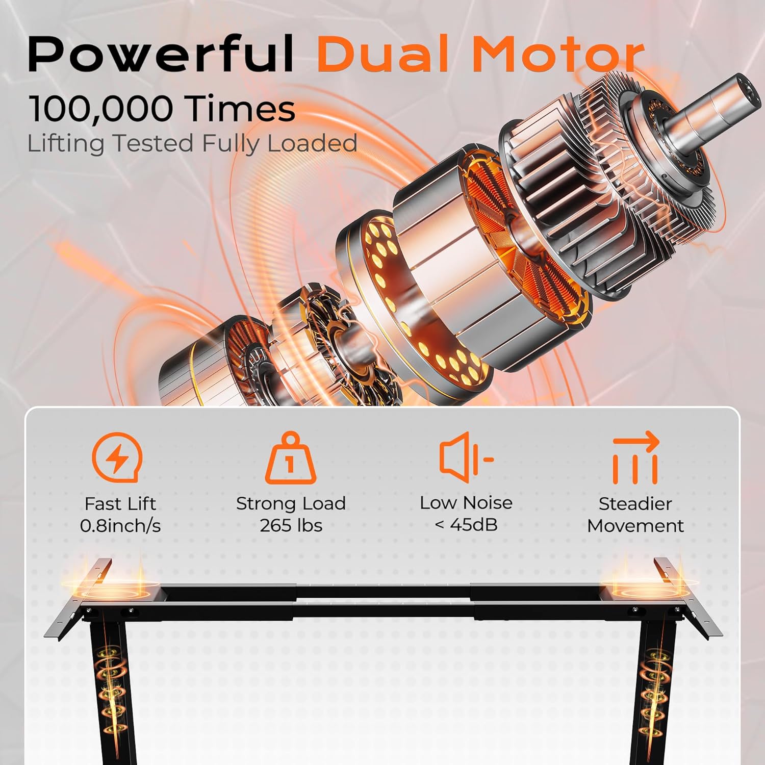 - 【Whisper-Quiet Operation】Powered by a dual-motor lift system running under 45 dB, this office standing desk frame glides up and down without disturbing calls, focus time, or your home’s peaceful atmosphere