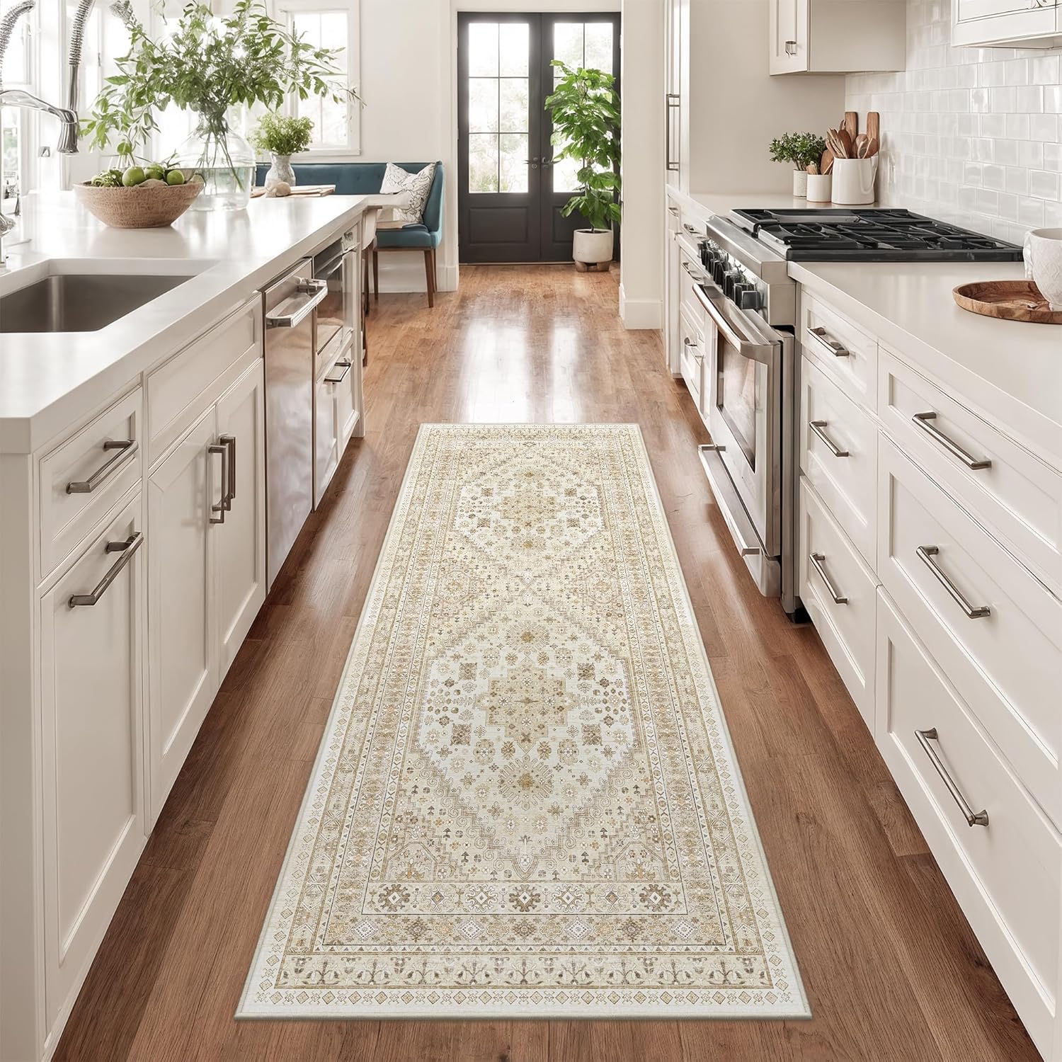 zesthome Runner Rug 2x5 - Stain Resistant Machine Washable Rug, Non Slip Vintage Hallway Runner Rugs, Low Pile Lightweight Runners for Kitchen, Entryway and Corridor