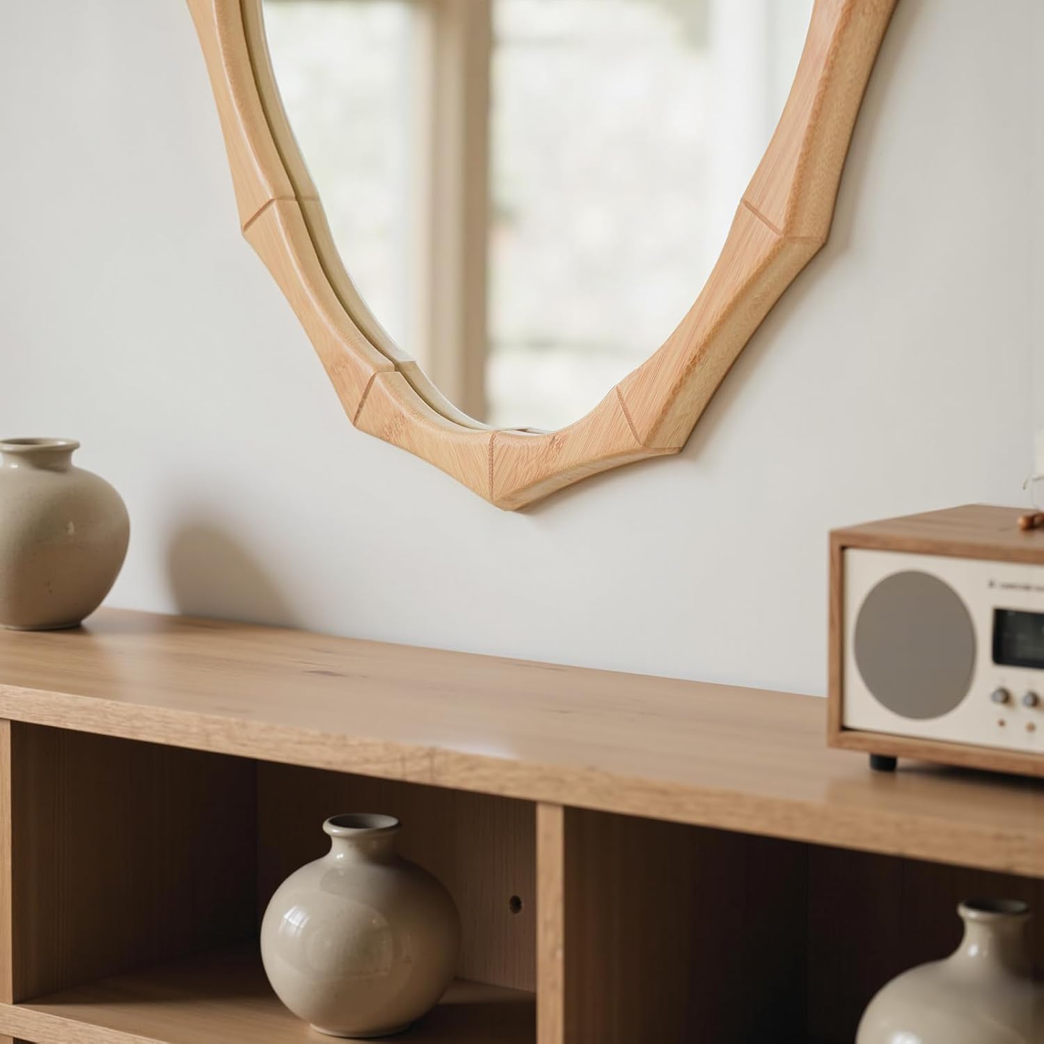 - Nature Bamboo Look: Its elegantly crafted bamboo-joint frame defines the unique character of this decorative oval mirror.This stunning rustic mirror, which can be used as a bedroom mirror or a hallway mirror, or is hung above the sofa or console table, brings more inspiration to your home decor.