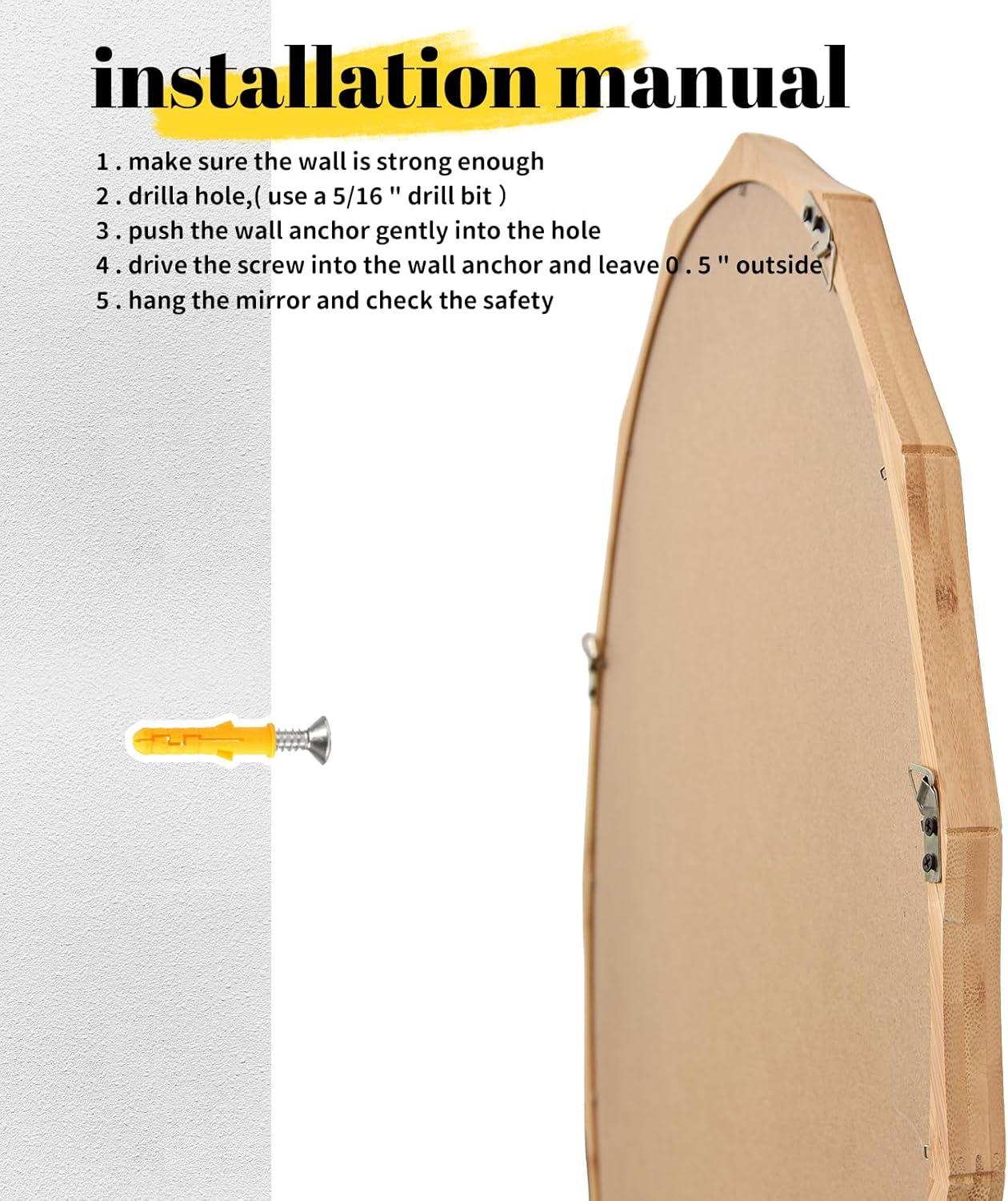 - Ready to Hang : Oval wood mirror sturdy and well-made yet not overly bulky. Hang it on the wall without taking up its position and providing perfect service.Combined with the installation of the Bamboo bathroom mirror, your life is more style, and the product is easy to use.