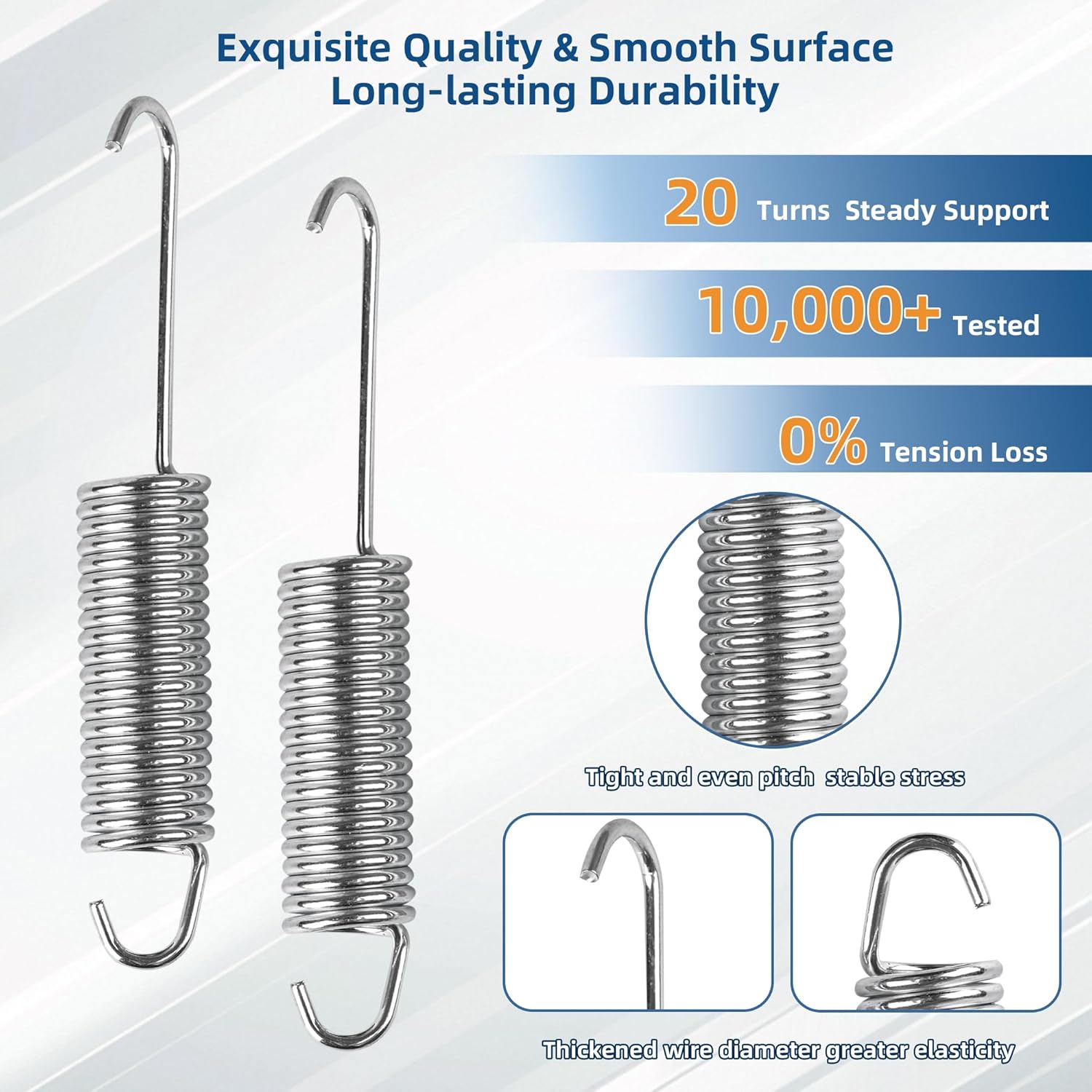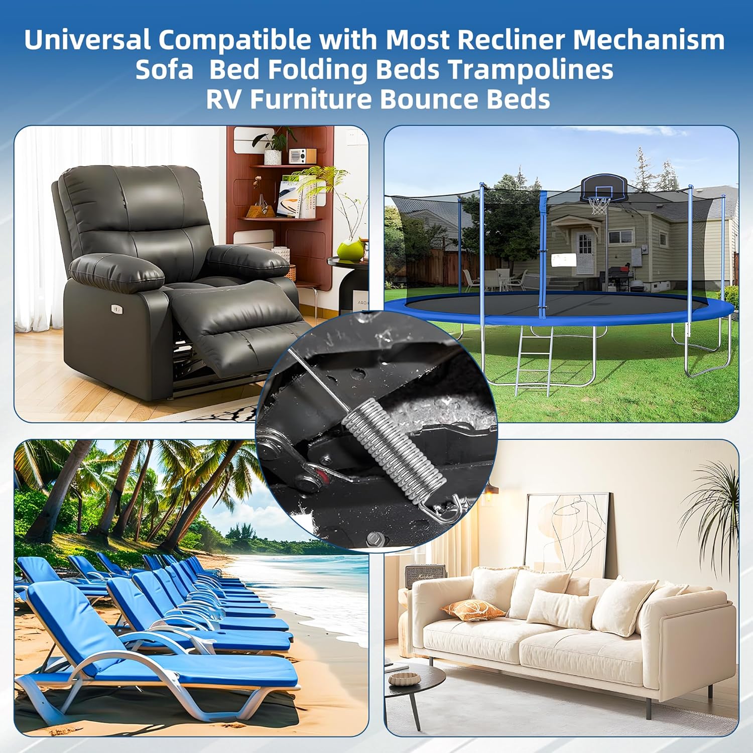 - 【Industrial-grade Durability】:Replacement recliner mechanism tension spring is made from high-carbon 304 stainless steel.High-tensile steel core with zinc plating for corrosion resistance. these springs resist wear and deformation, supporting up to 250 lbs per spring for long-lasting performance. Rigorously tested to 10,000+ cycles without tension loss
