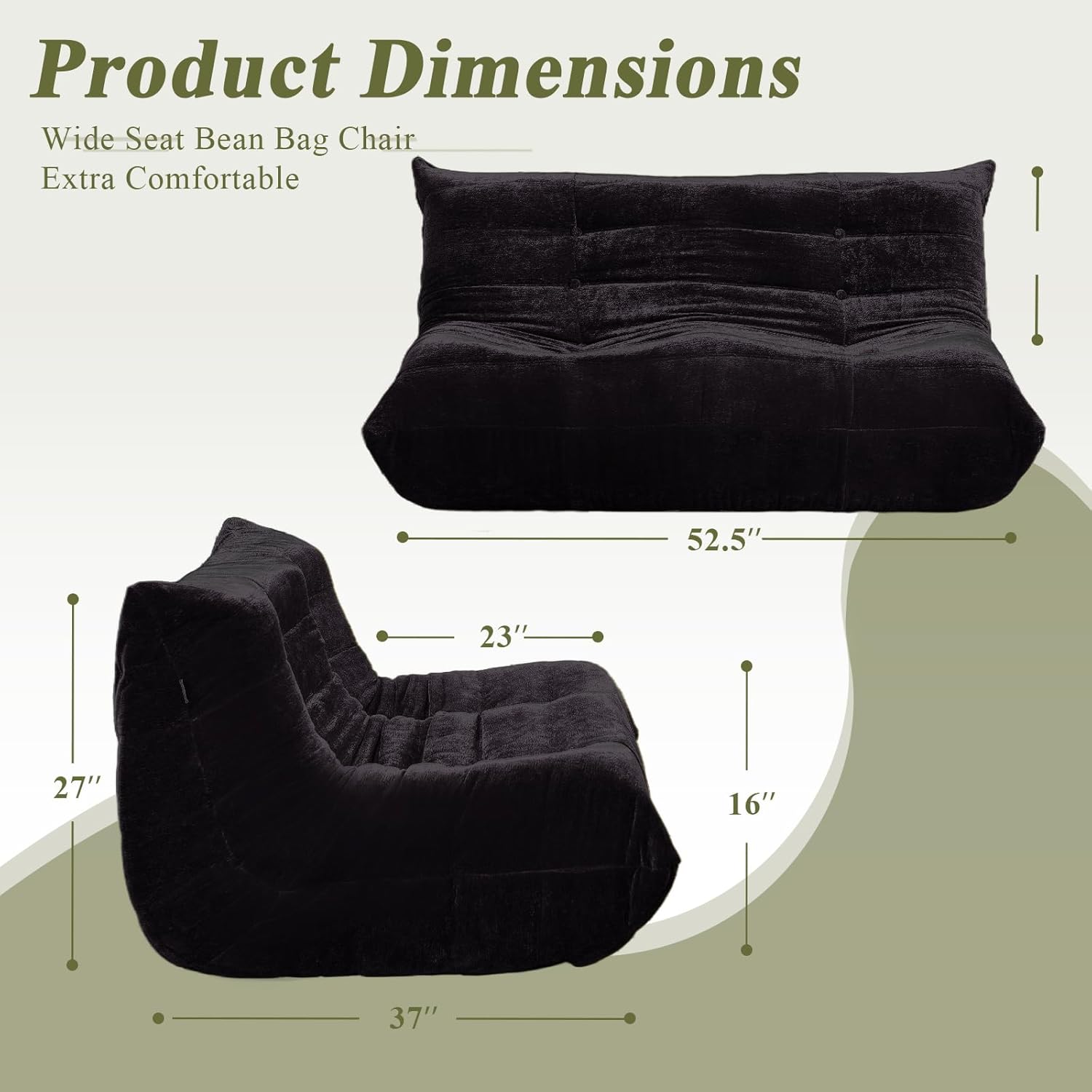 Bean Bag Chair, Loveseat Fireside Chair Large Bean Bag Sofa for Adults, Memory Foam Two Seater Couch Gaming Chairs with Comfy Design, Lazy Floor Sofa for Living Room, Bedroom, Dark Gray
