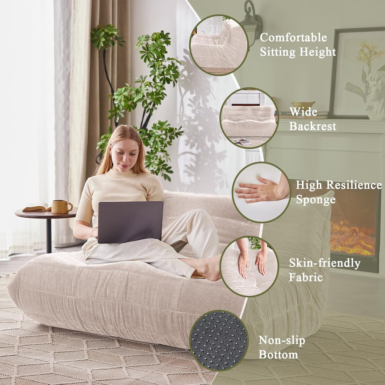 Bean Bag Chair, Loveseat Fireside Chair Large Bean Bag Sofa for Adults, Memory Foam Two Seater Couch Gaming Chairs with Comfy Design, Lazy Floor Sofa for Living Room, Bedroom, Beige