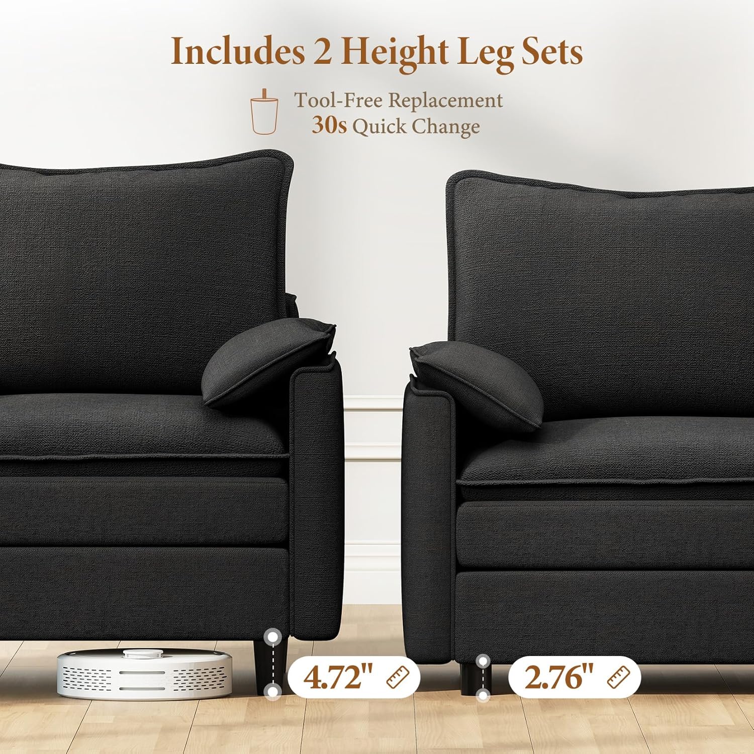 - Two Sets of Sofa Legs & Effortless Assembly: This sectional couch comes with two leg height options—2.76" and 4.72"—so you can customize the height to suit your preference. Choose the lower height for a relaxed look, or the higher height for easier access, which also allows robot vacuums to clean underneath with ease. Assembly is simple: with clear instructions and all the necessary tools included, you can have it setup in just 30 minutes with no extra equipment required