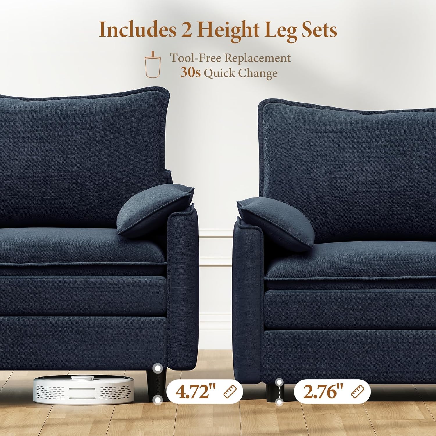 - Two Sets of Sofa Legs & Effortless Assembly: This oversized couch comes with two leg height options—2.76" and 4.72"—so you can customize the height to suit your preference. Choose the lower height for a relaxed look, or the higher height for easier access, which also allows robot vacuums to clean underneath with ease. Assembly is simple: with clear instructions and all the necessary tools included, you can have it setup in just 30 minutes with no extra equipment required