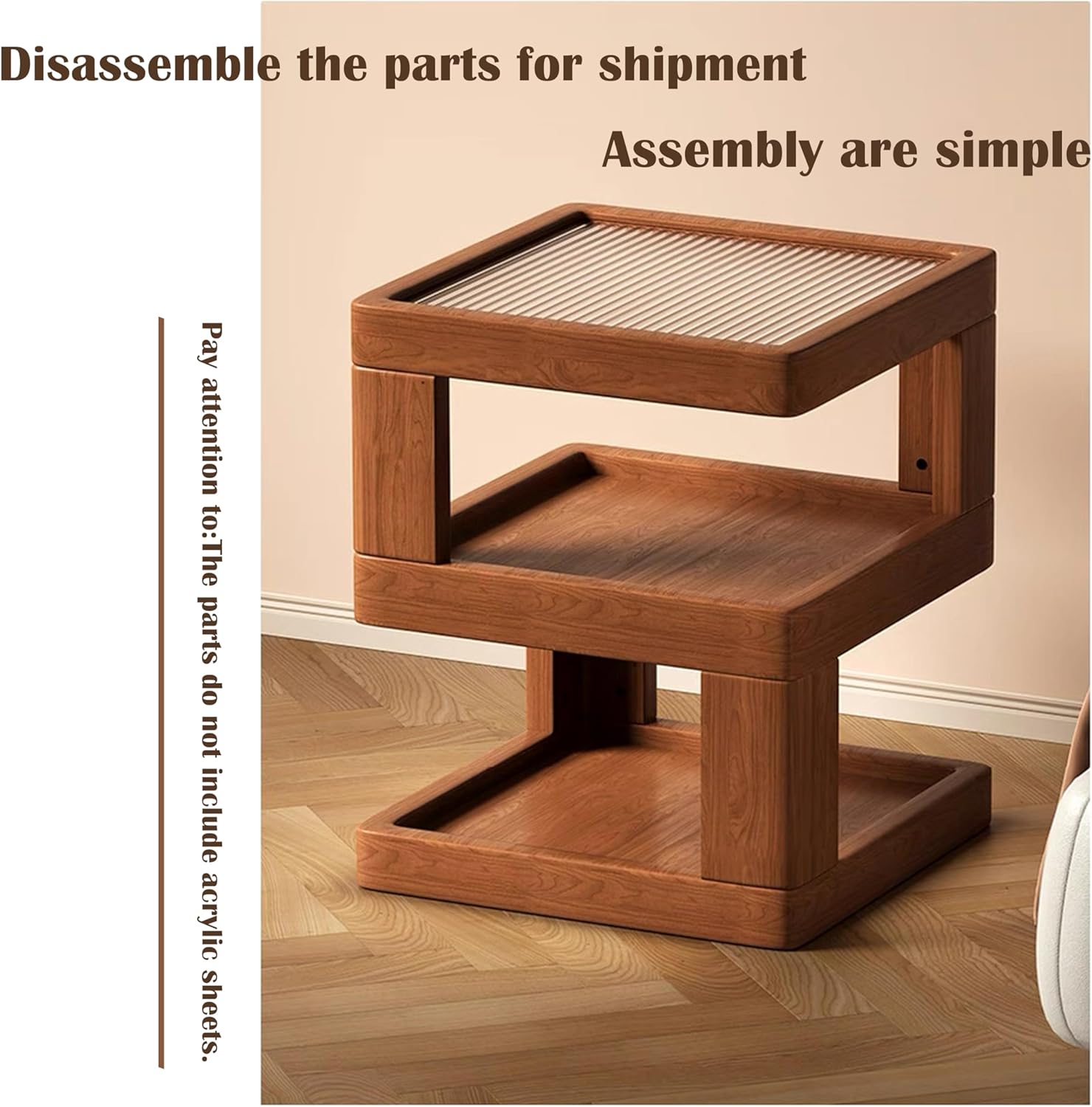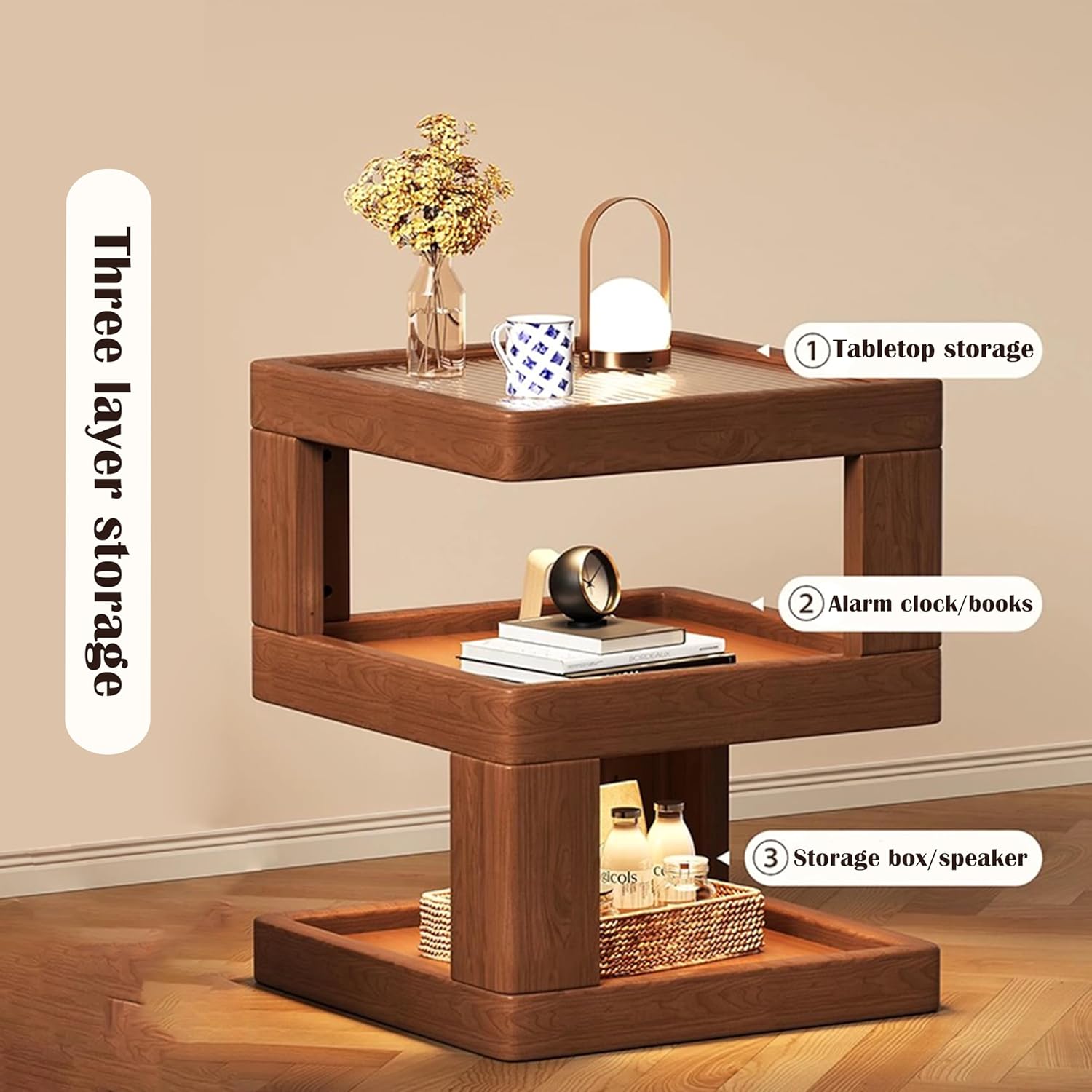Nightstand Bedside Table with 3-Tier Storage, Modern Solid Rubberwood End Side Table for Bedroom Living Room,Original Wood Color Walnut (13.7" D x 13.7" W x 21.2" H)