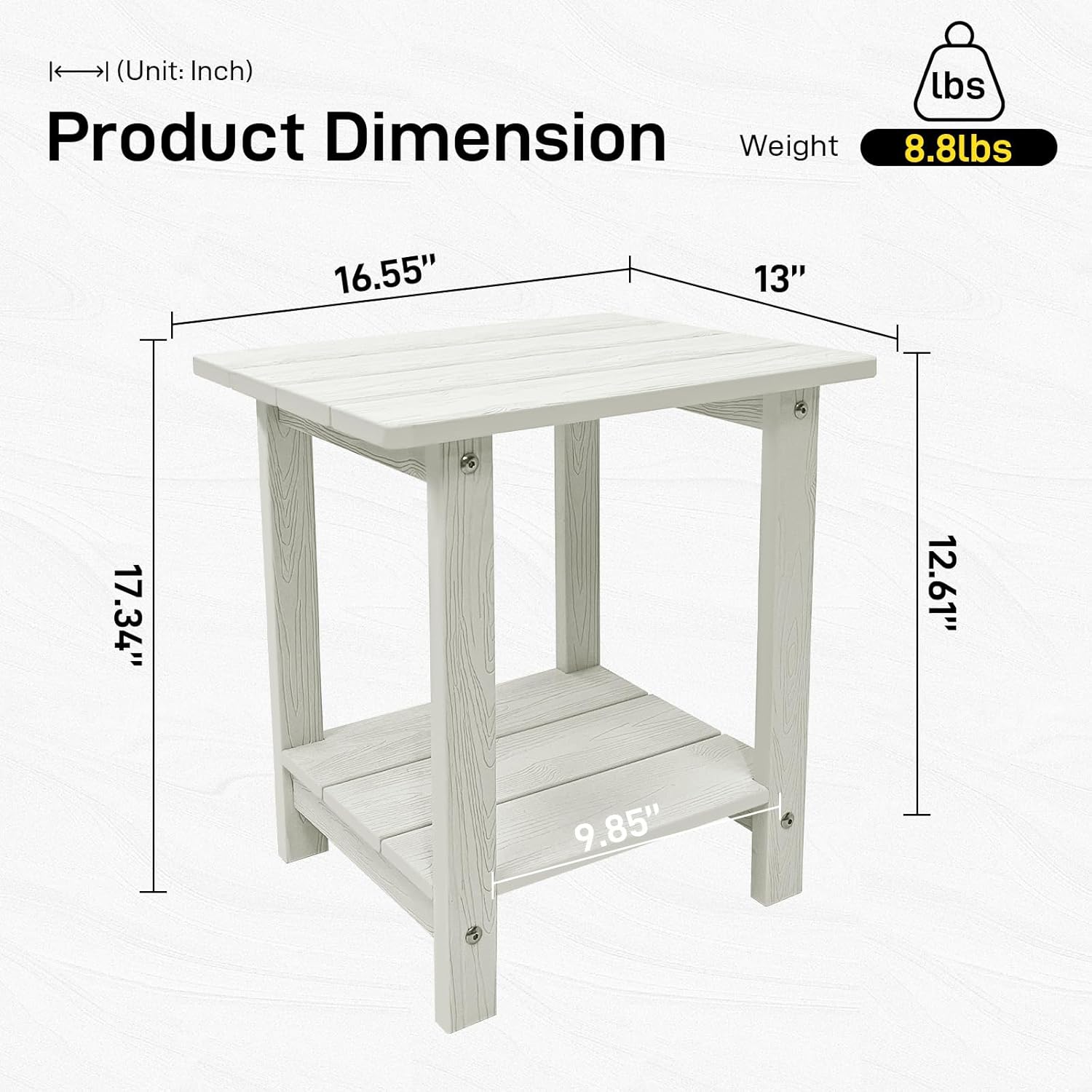 - Sleek & Stylish Appeal With its clean lines and contemporary Adirondack-inspired design, this side table adds a refined touch to any outdoor setting. Whether placed on a patio, deck, balcony, or garden, it effortlessly blends style and function.