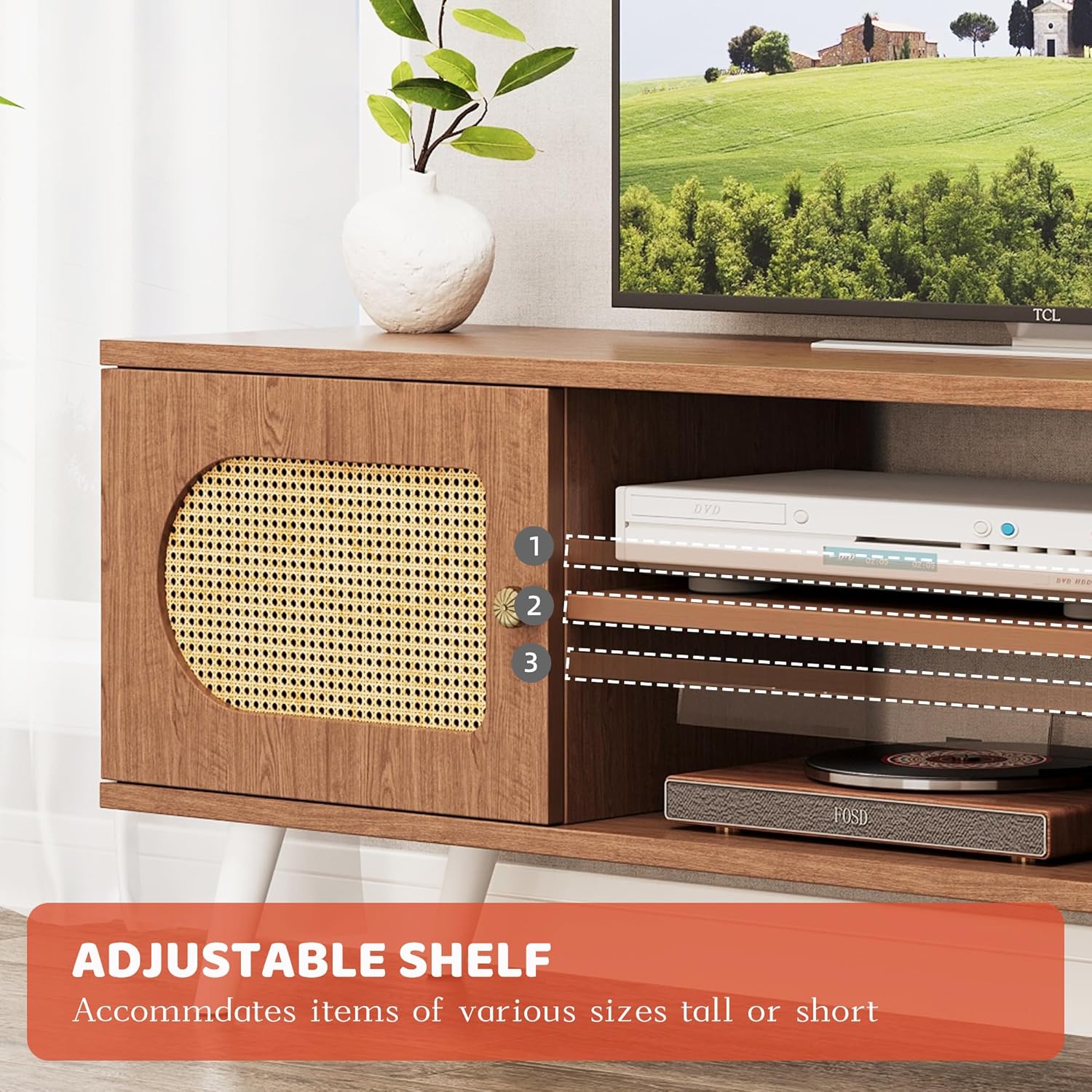 - Wood Modern TV Console: Designed in a mid-century modern style. This rattan TV stand is a great addition to your living room, bedroom, apartment or lounge
