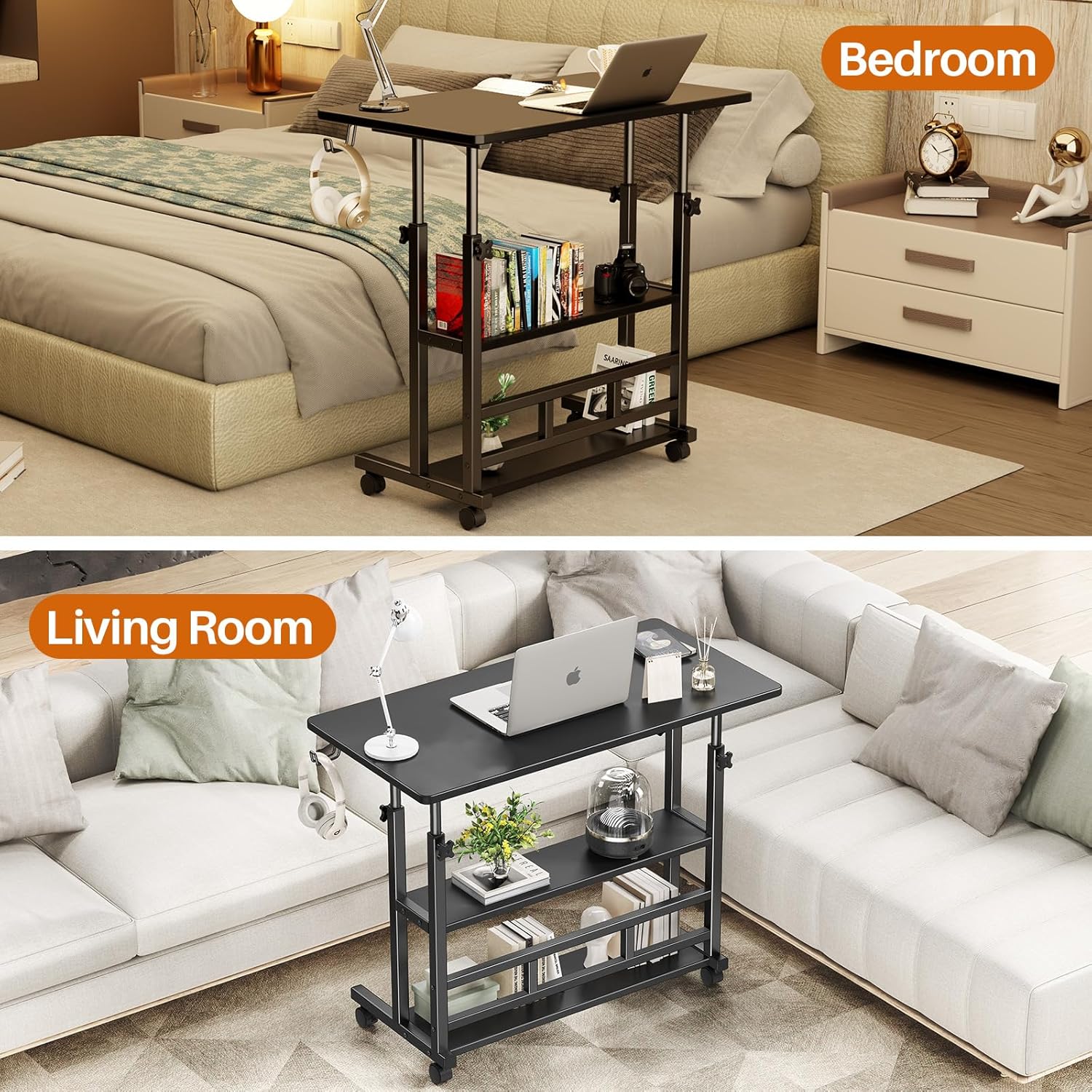 Adjustable Height Standing Desk, Rolling Stand Up Desk with Storage Shelves, 31.5" Small Mobile Computer Desk, Portable Laptop Table (Simple Black)