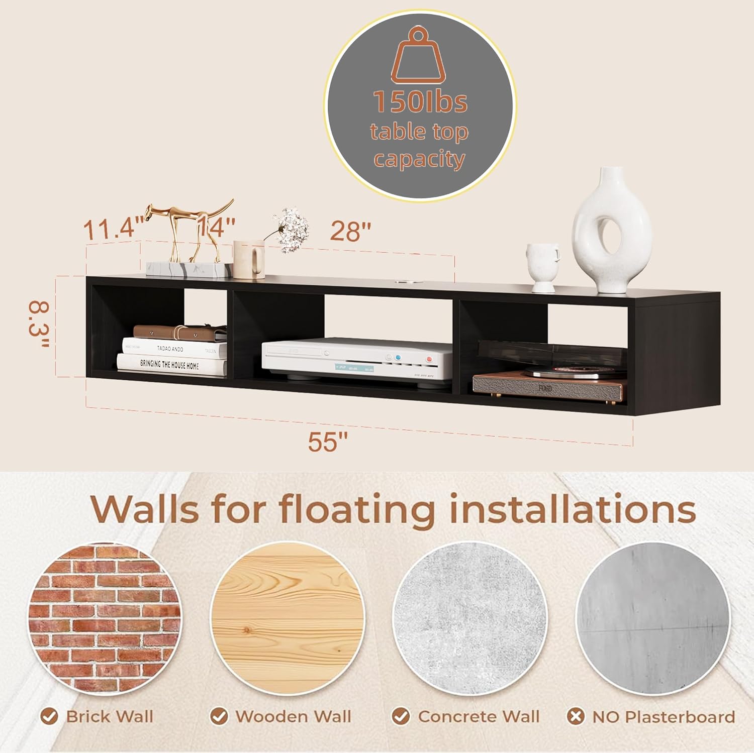 - Easy to Install: Our floating entertainment rack comes with all the necessary hardware, tools, and installation instructions to make installation a breeze. It's great for solid wood, wood, or plaster walls.