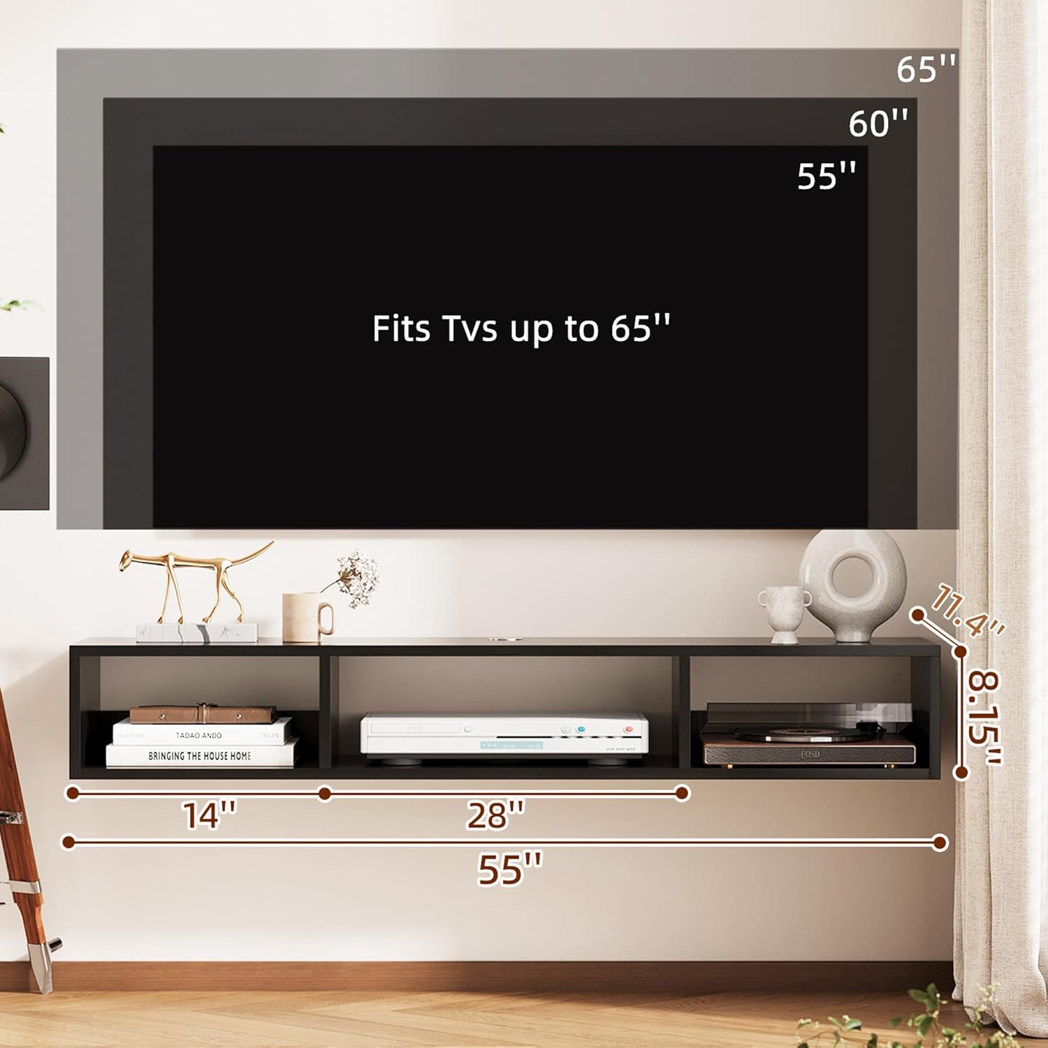 55" Floating TV Stand Modern Floating TV Console Wall Mounted Entertainment Center with Open Storage Cabinet Storage for Living Room Bedroom, Black