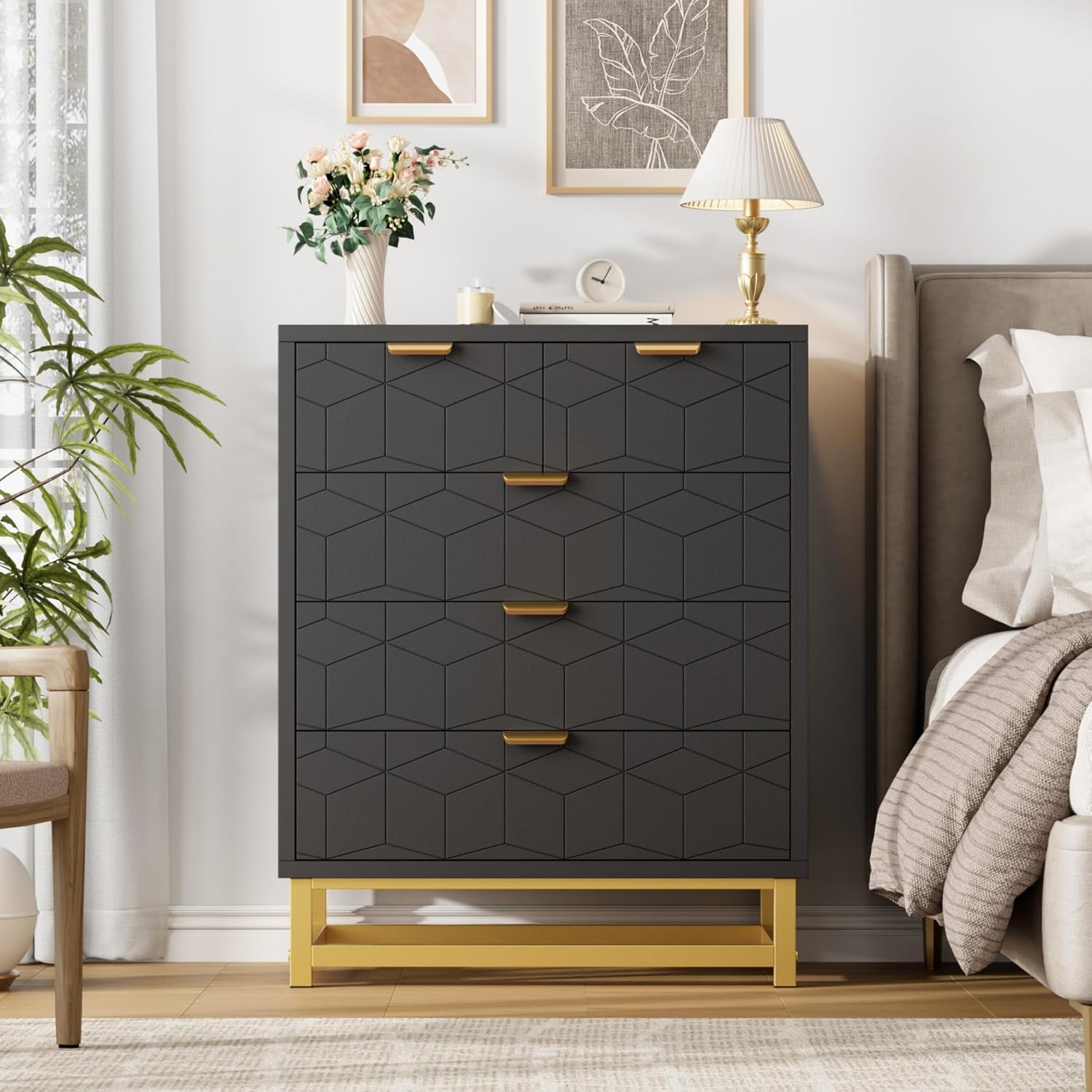 - Elegant & Stylish: Delicate gold metal legs and handles combined with modern engraving patterns add appealing detail to this drawer dresser, and easily match any decoration style to add unique charm to your space.