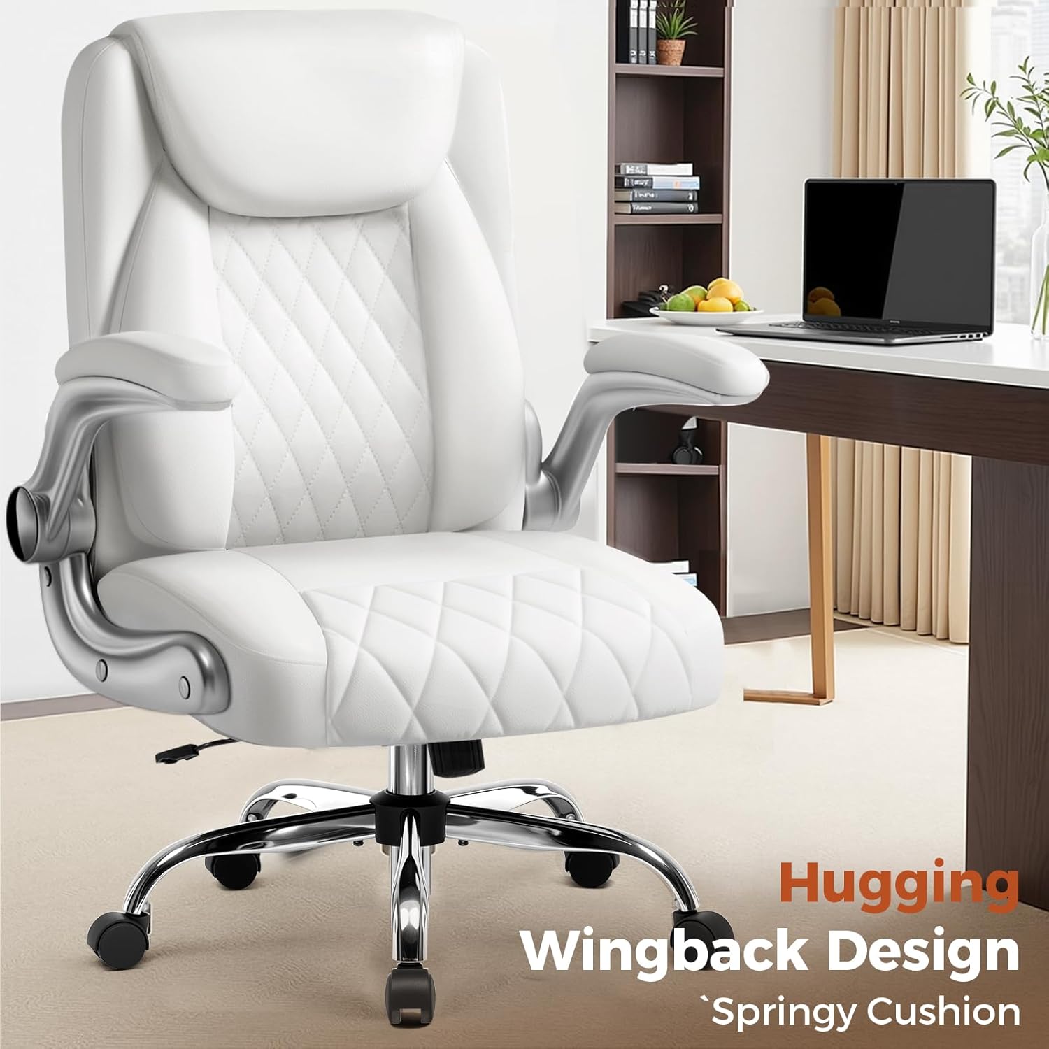 - 【Quality Crafted】The executive chair features skin-friendly, easy-to-clean faux leather that resists stains, scratches, peeling, and cracking — offering long-lasting durability, waterproof performance, and wear-resistant excellence. Paired with diamond-quilted breathable panels, it addresses the common issue of stuffiness in traditional leather chairs, ensuring enhanced airflow and a sweat-free seating experience.