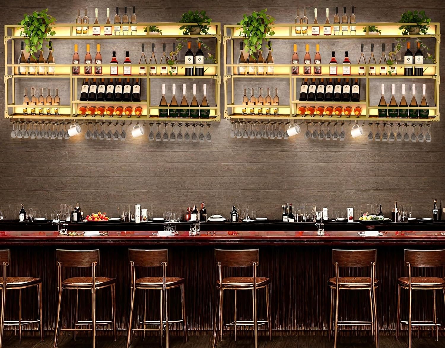 - Secure Storage Design - Crafted from wrought iron, our wall bar shelf features a stable structure to keep bottles and glasses firmly positioned. The open framework allows optional integration with LED lighting systems to enhance visual presentation of stored items.