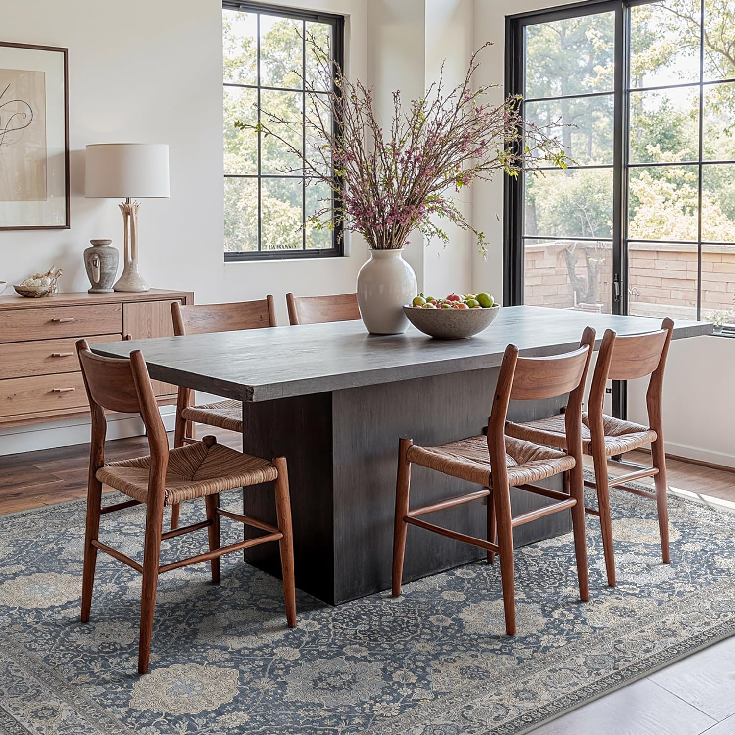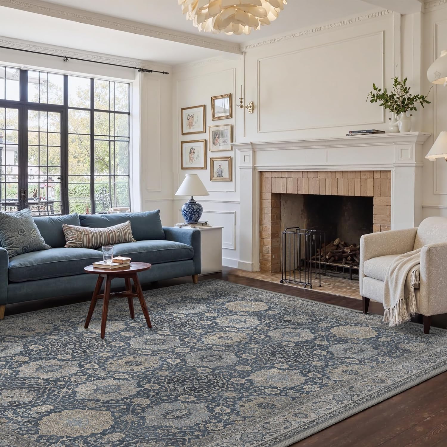 - Timeless Vintage Design:This slate blue rug elegantly combines a timeless floral design with a muted color palette to infuse your living space with a touch of vintage charm. Its unique texture and patterns add a layer of sophistication and comfort to any room, making it a versatile addition to both modern and traditional decors.