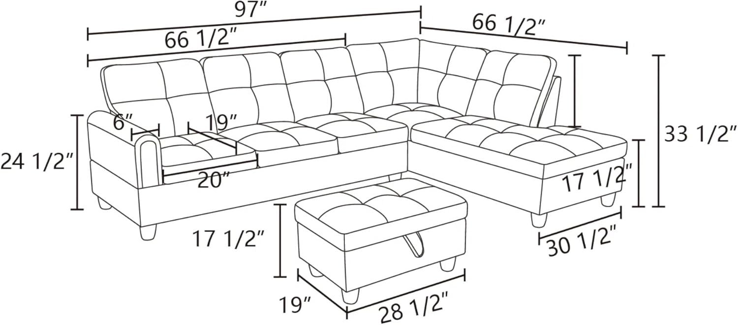 - Sturdy and durable structure: The L-shaped sofa integrates S-shaped springs to ensure that the cushions remain flexible and supportive, while the sturdy synthetic metal hardware accessories (including connectors and feet) ensure that the L-shaped sofa is durable and stable