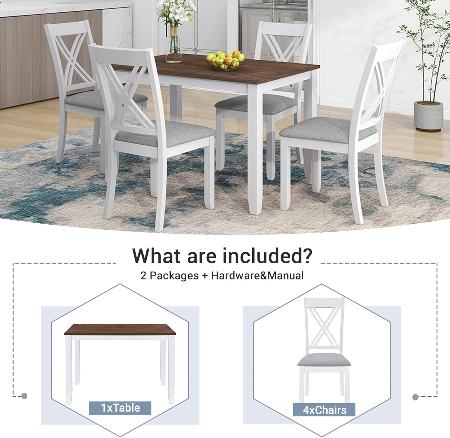 Ball & Cast 5-Piece Dining Table Set for 4,Kitchen Table Set W/ 44.5" Rectangle Table,Living Room Furniture W/ 4 X-Back Linen Upholstered Chairs,for Dining Room,Kitchen,Restaurant,Walnut+Light Beige