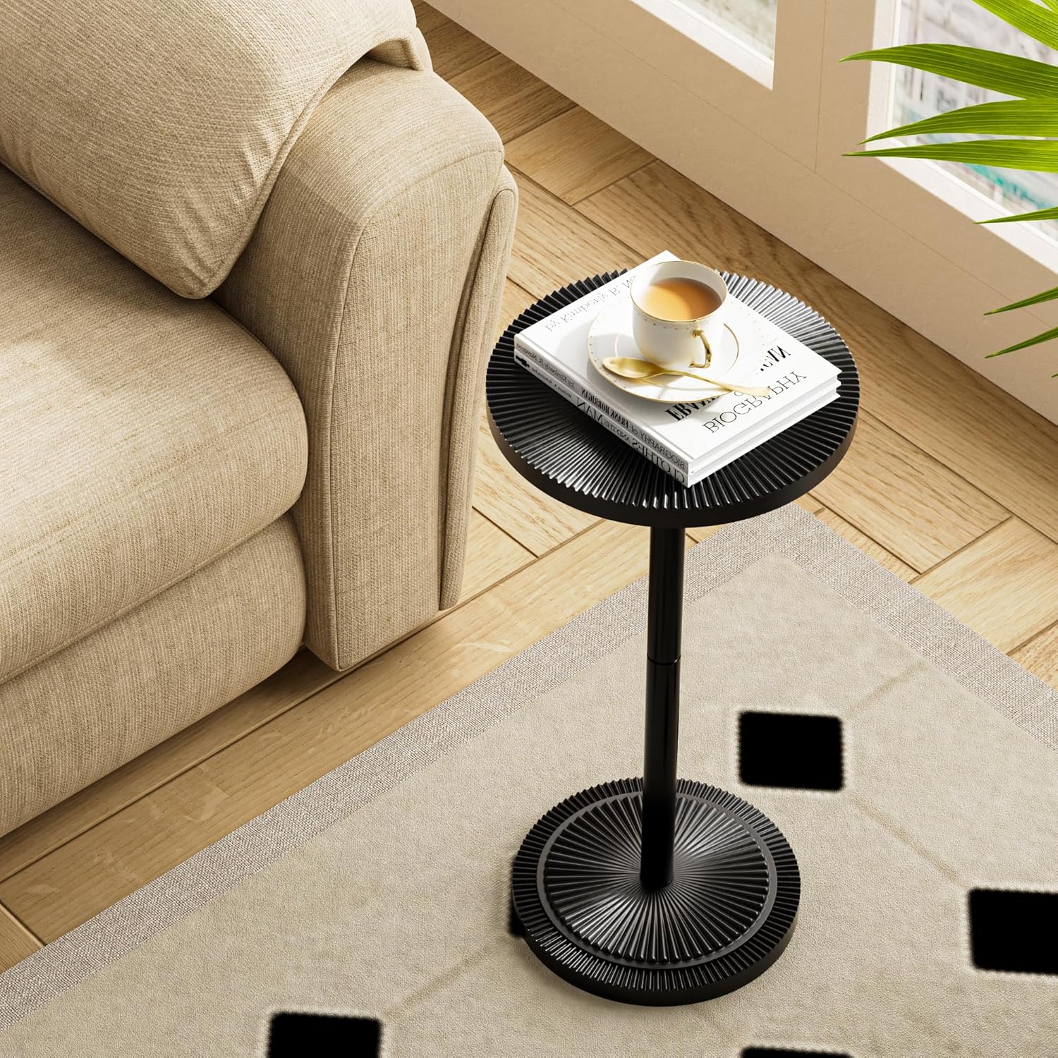 - Multi-Purpose: This round side table is easy to move to meet various needs in your home. Place it in the bedroom, patio or balcony, use it as a living room side table, bedroom nightstand , and outdoor small drink table, pedestal plant stand, cocktail table or martini table.