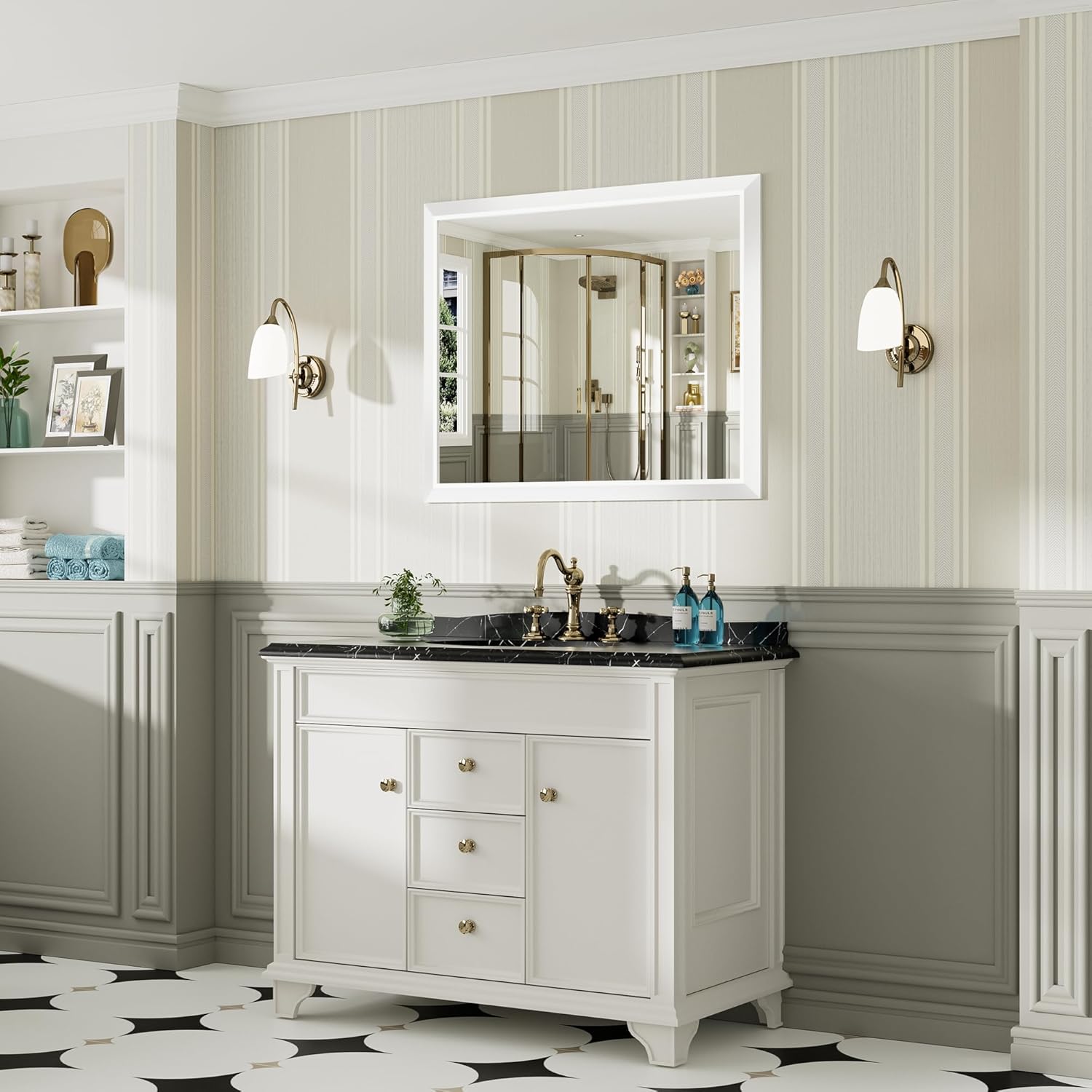 - 【Overall Aesthetics for Room Decor】The white bathroom mirrors for over sink with its modern frame, not just for bathroom, it also can be used in a variety of scenarios, like vanity, farmhouse, bedroom, living room, dining room, entryway, fireplace, corner which is perfect to a room remodeling project and adds a stylish look to your house.