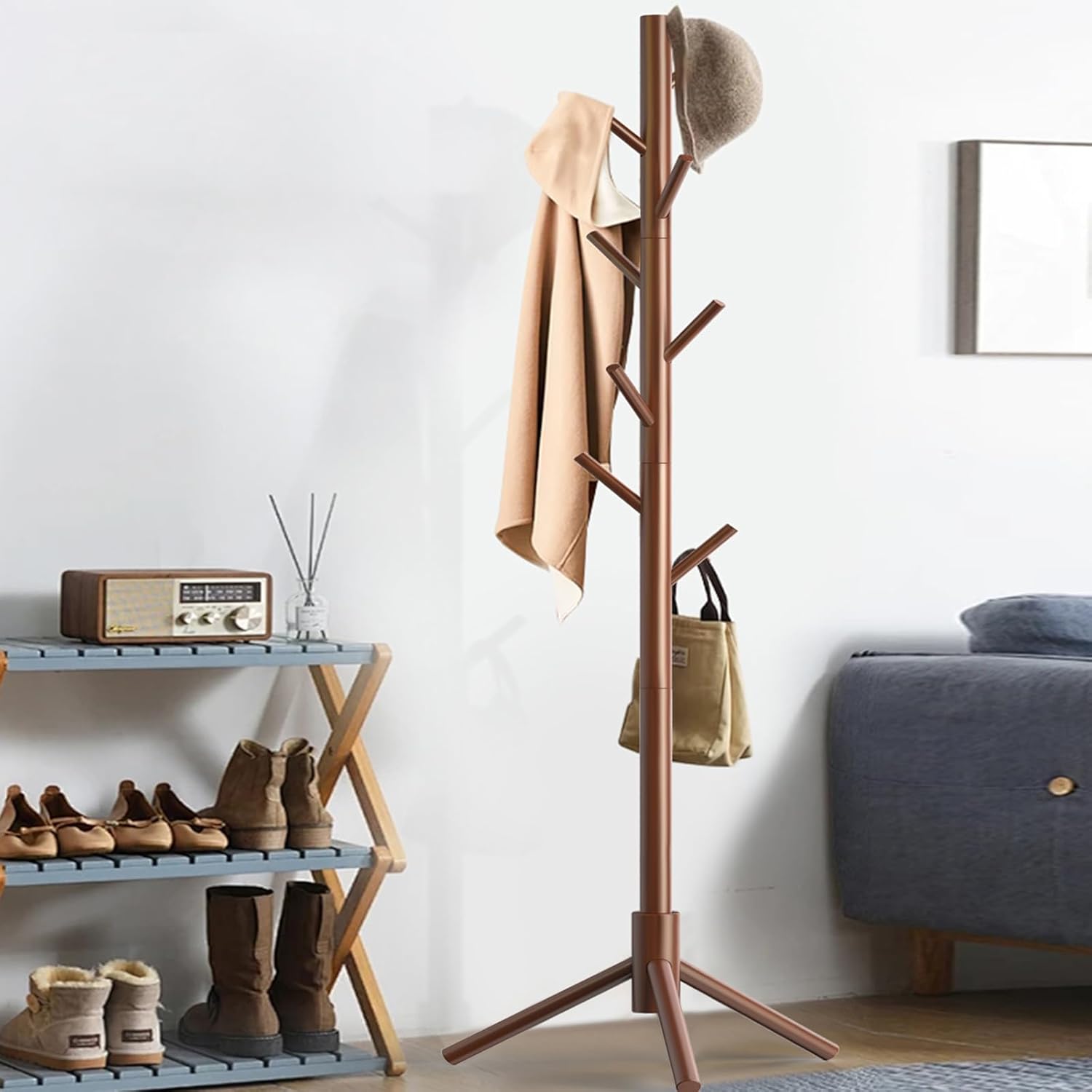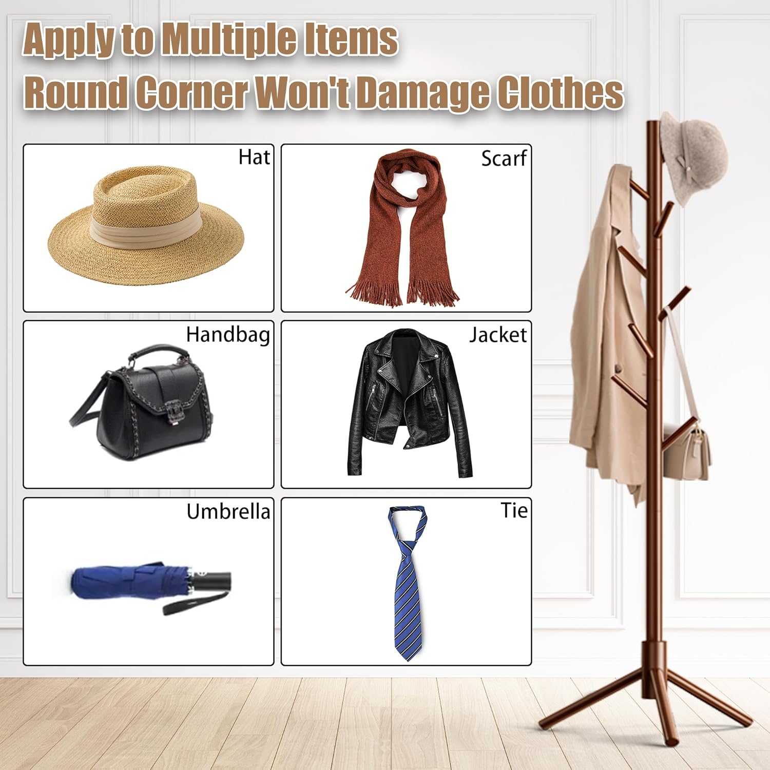 - Spacious 8-Hook Design – Ample Storage: With 8 smooth wooden hooks, this clothes tree provides plenty of space for coats, scarves, hats, and backpacks. Keep your home tidy with this modern coat rack—perfect for small spaces!