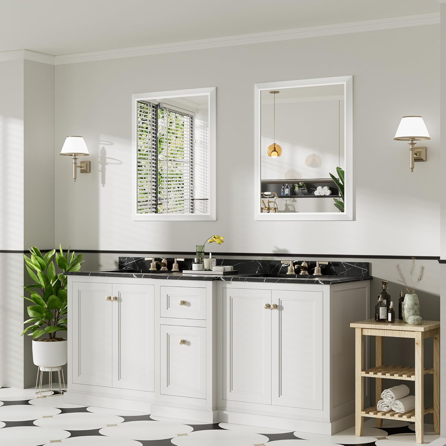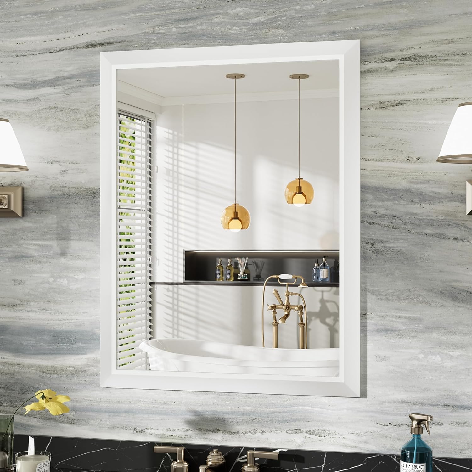 - 【Overall Aesthetics for Room Decor】The white bathroom mirrors for over sink with its modern frame, not just for bathroom, it also can be used in a variety of scenarios, like vanity, farmhouse, bedroom, living room, dining room, entryway, fireplace, corner which is perfect to a room remodeling project and adds a stylish look to your house.