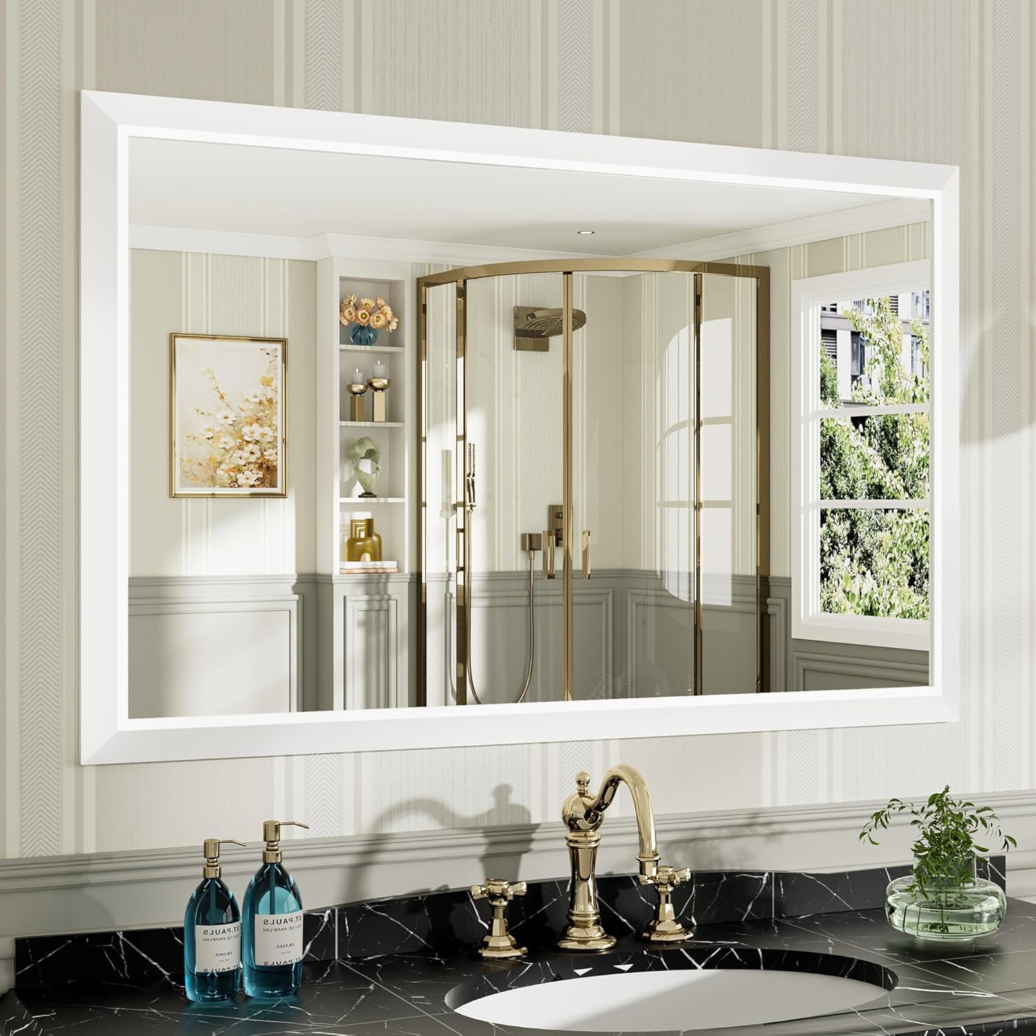 - 【Overall Aesthetics for Room Decor】The white bathroom mirrors for over sink with its modern frame, not just for bathroom, it also can be used in a variety of scenarios, like vanity, farmhouse, bedroom, living room, dining room, entryway, fireplace, corner which is perfect to a room remodeling project and adds a stylish look to your house.