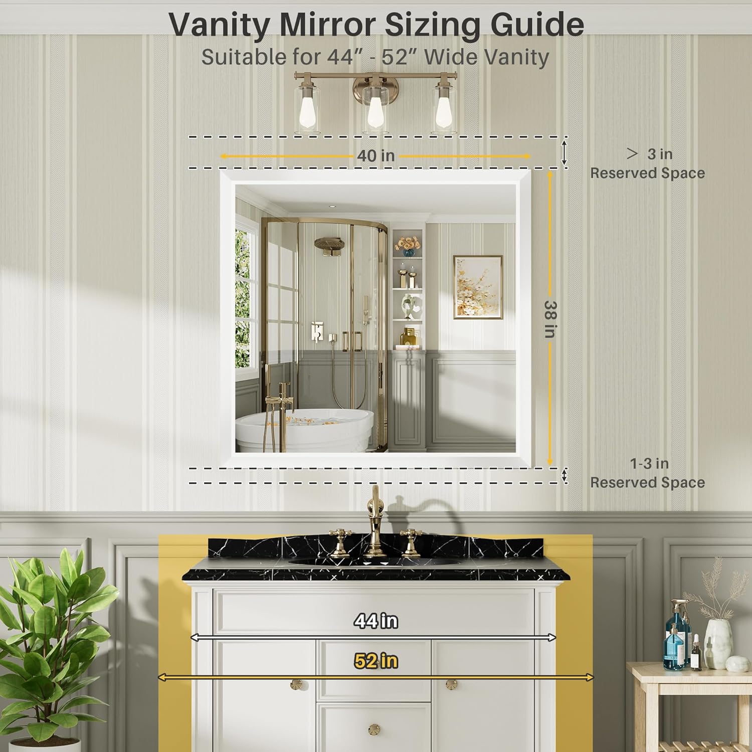 40x38 Inch White Bathroom Mirror for Wall, Thick Metal Framed Rectangle Mirrors for Over Sink, Bedroom, Living Room, Entryway, Anti-Rust, HD Tempered Glass