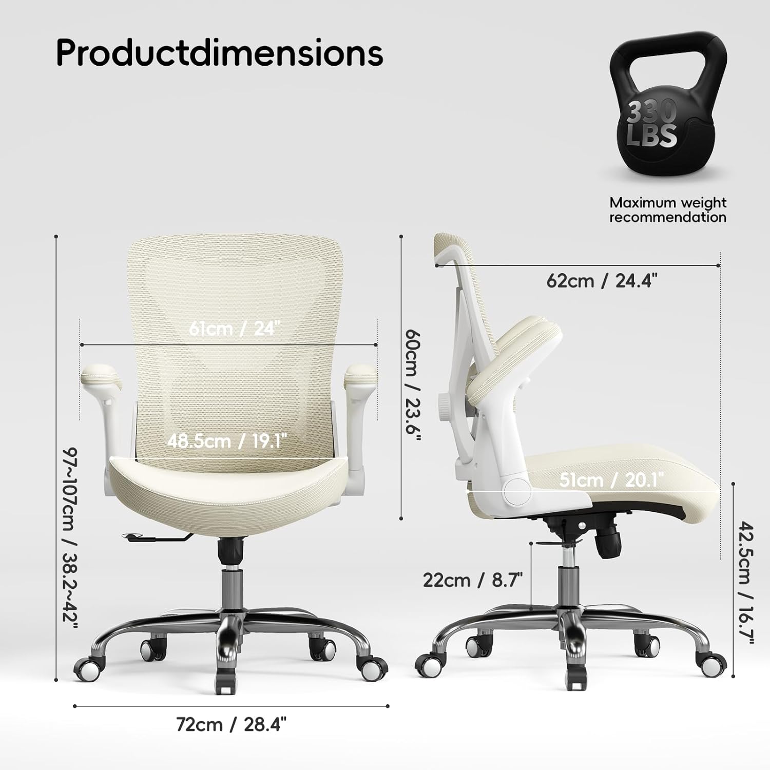 Home Office Ergonomic Chair-Computer PU Leather X-Shaped Desk Chair-Gaming Chair with Adjustable Flip-up Armrests Lumbar Support Mesh Executive Chair for Long Hours Office (Beige)