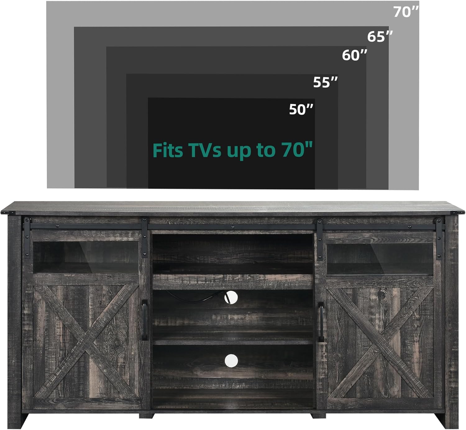 YITAHOME Farmhouse TV Stands for 75 Inch TV with Power Outlets, Entertainment Center with Sliding Barn Doors and Adjustable Shelves, TV Cabinet Media Console Table for Living Room, Dark Rustic Oak