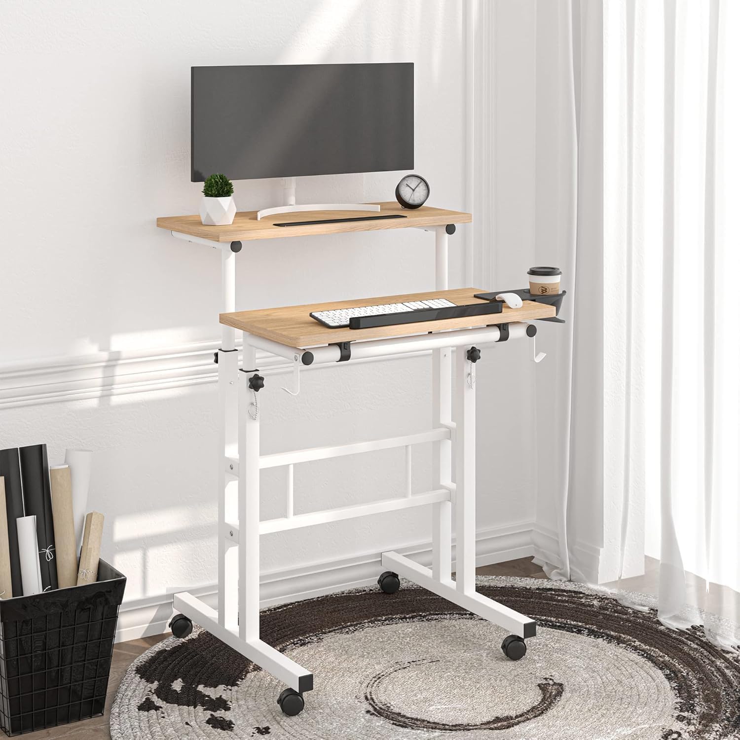 Klvied Mobile Standing Desk with Removable Cup Holder, Portable and Easy to Move, Ideal for Home or Office, Khaki
