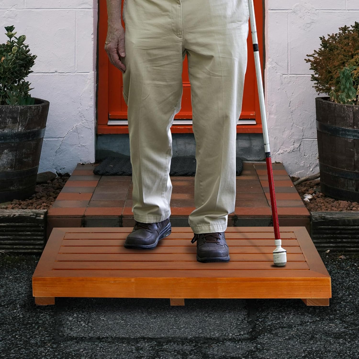 3.15" One Step Stool for Elderly (No Assemble Required)- Friendly Acacia Wood High Riser Step Stool for Bed - Wooden Mobility Stepping Stools for Adults, Kids/Bedside, Bathroom, Kitchen, Garden