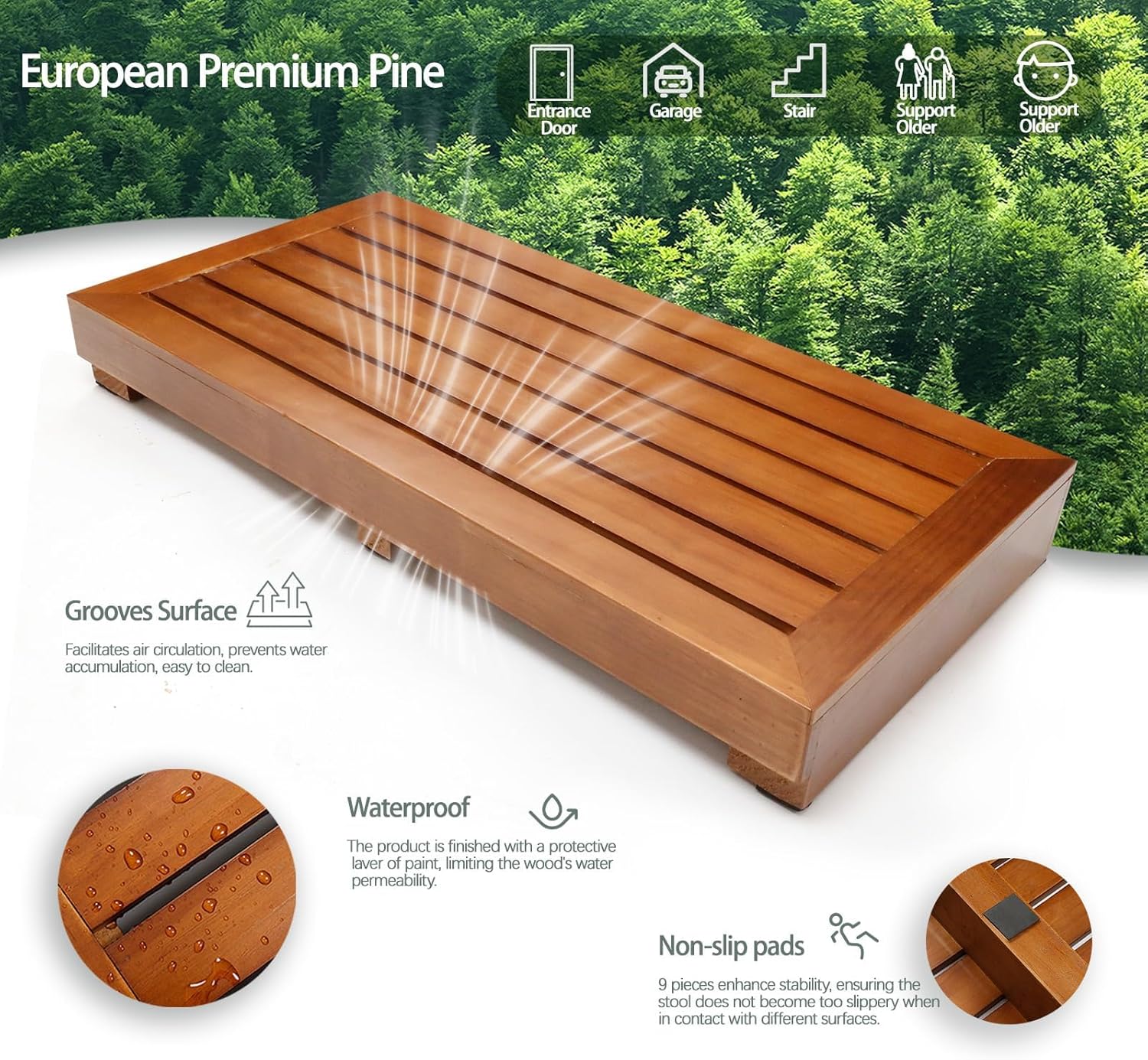 - Safety First – The OLOP Qoutdoor Steps feature a robust multi-leg support design, with a weight capacity of 500 lbs. The solid hardwood construction is strong and reliable, reinforced with additional support legs in the center to prevent uneven stress and cracking. This ensures maximum safety for users when using the step stool