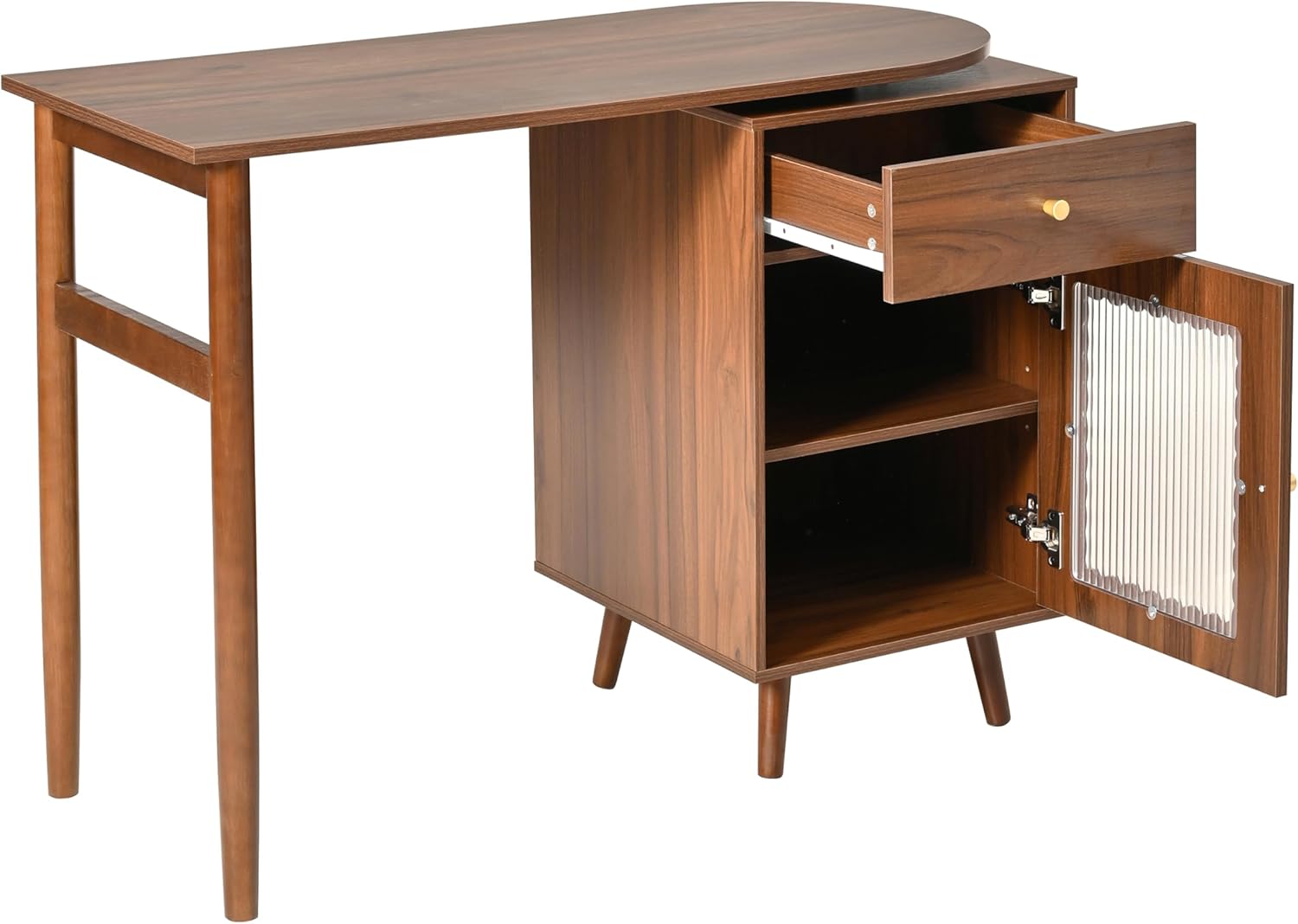 - 3.【Writing Desk with Storage Cabinets】This desk features 2 storage cabinets with elegant transparent glass doors, combining both style and functionality. The glass doors help keep your personal items dust-free while allowing you to easily see and access what's inside—perfect for organizing and protecting your belongings with a touch of sophistication.