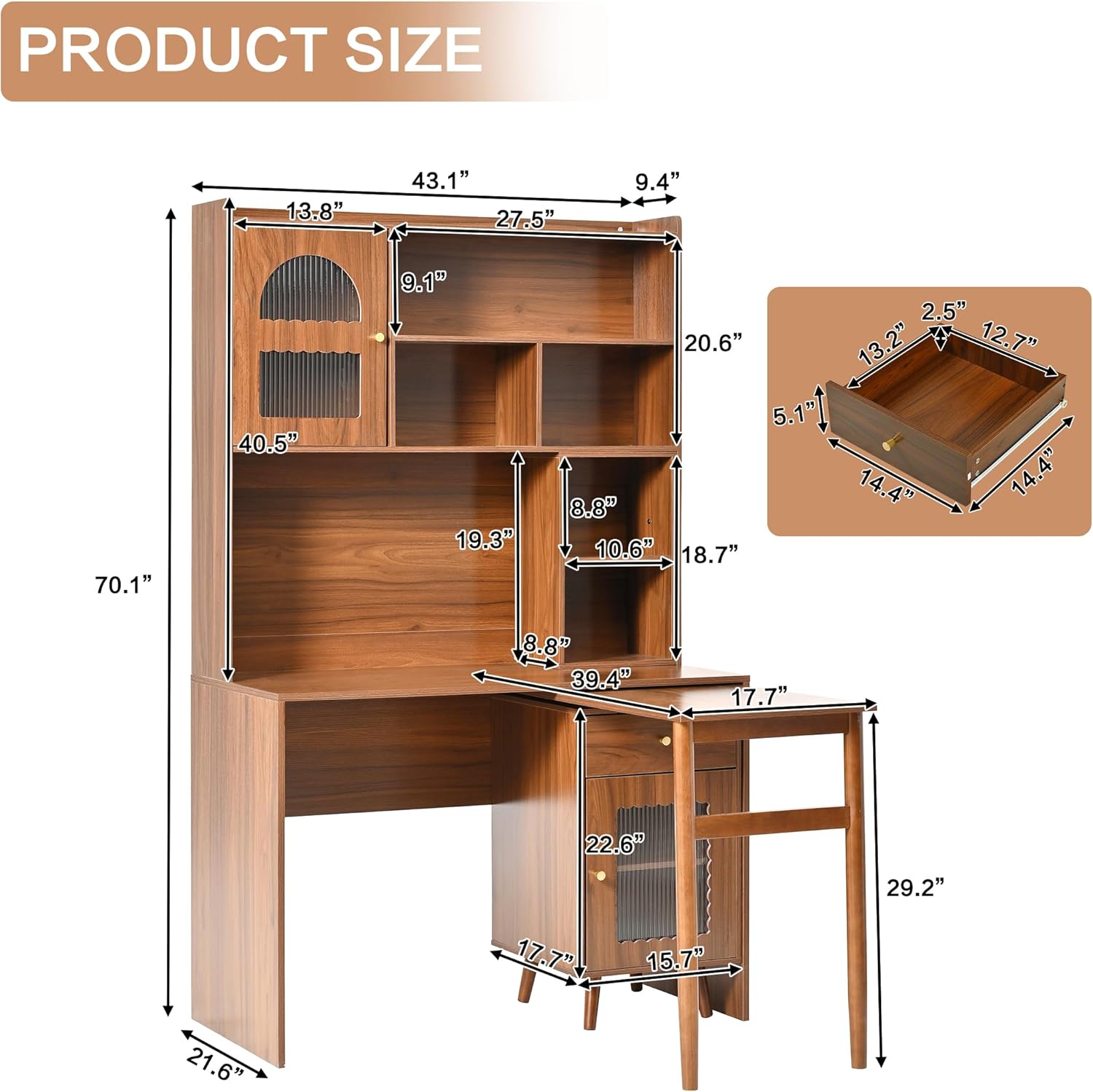 - 5.【Product Dimensions & Easy Assembly】The main body of the computer desk: 43.1’’L*21.6’’W*70.1’’H, rotating desktop:39.4''L*17.7''W*29.2''H. This work desk features a simple, straightforward structure that makes assembly quick and hassle-free. All necessary tools and a detailed instruction manual are included in the package, so you can set it up with ease as soon as it arrives.
