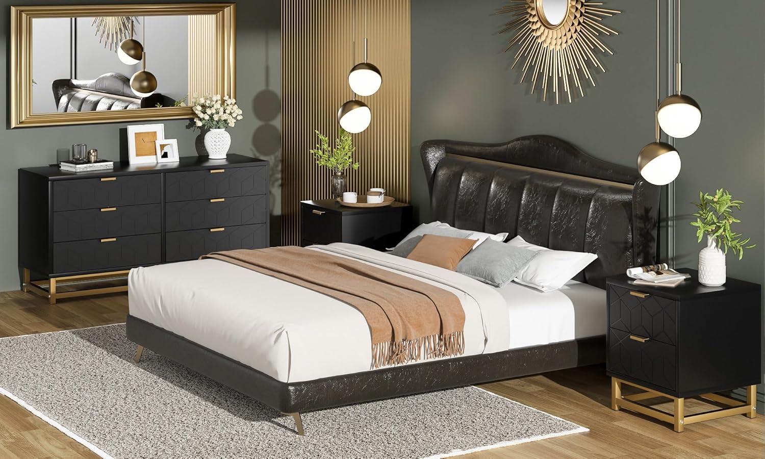 - 【Minimalist Design】The exquisite gold metal legs and handles, paired with modern carved patterns, infuse this dresser with an artistic flair. This versatile design effortlessly complements various interior decor styles, enhancing the visual appeal of any room while maintaining a clean, uncluttered look.