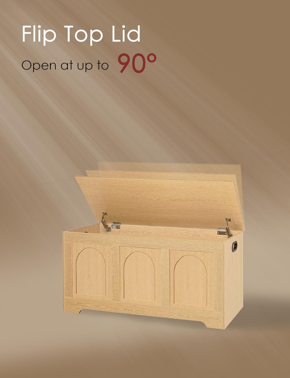 DINZI LVJ Storage Chest, 39.4”Wooden Storage Box with 2 Safety Hinges, Entryway Shoe Bench with Flip-Top, Trunk for Living Room, Bedroom, Easy Assembly, Natural