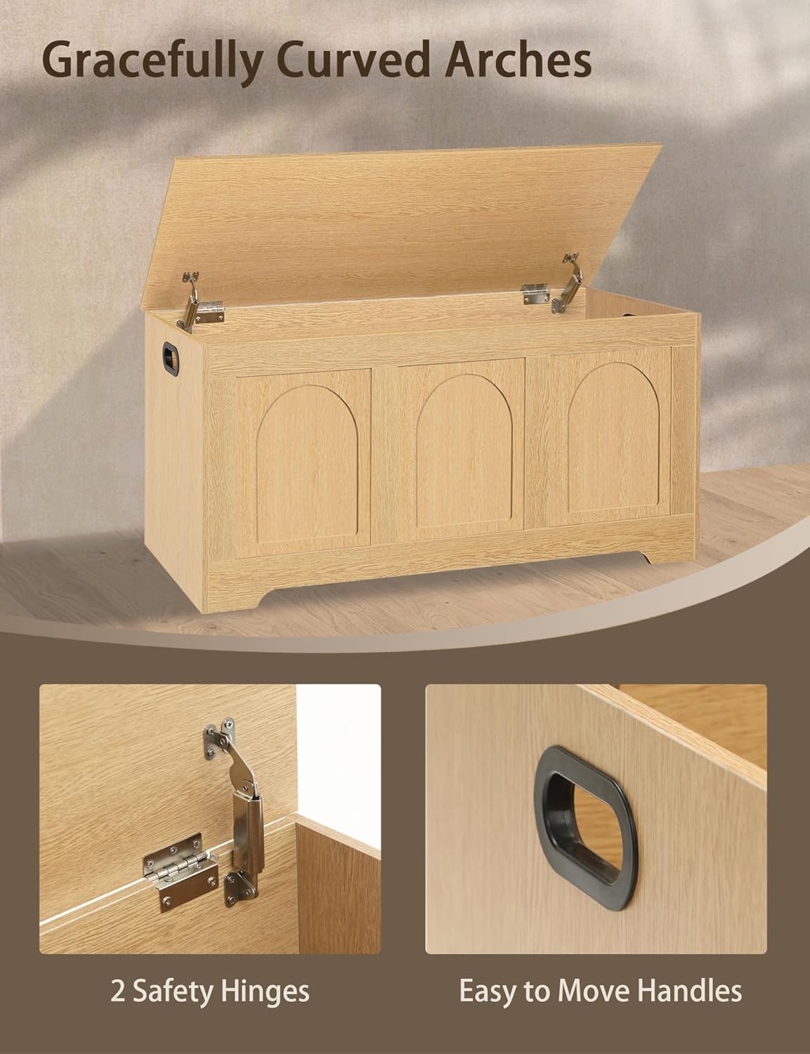 - 【2 Hinges for Added Safety】The sturdy wooden storage chest features 2 safety hinges, holding the lid open and close slowly and smoothly. The lid can stay open at any angle without risk of slamming shut or pinching fingers. 2 cut-out handles allow you to easily move around