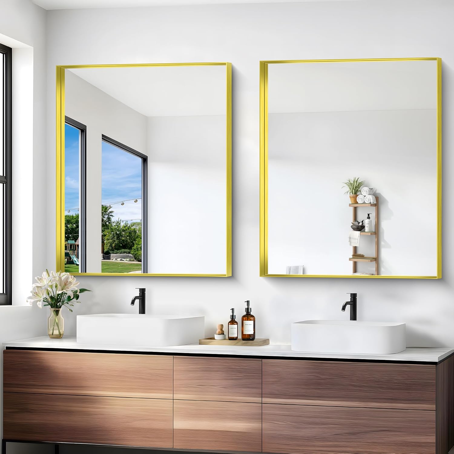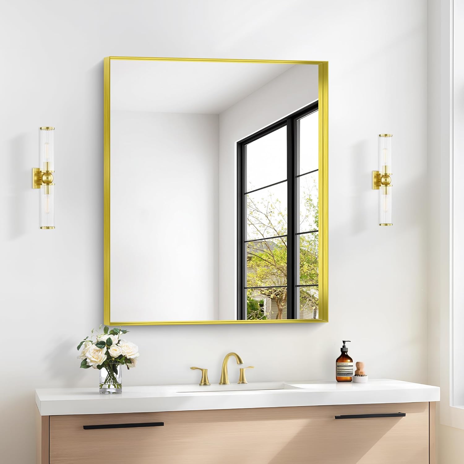 Gold Bathroom Mirror, 30x36 Inch Rectangular Framed Mirror, Large Wall Mounted Bathroom Vanity Mirror Over Sink for Bedroom,Restroom, Living Room, Hangs Vertically or Horizontally