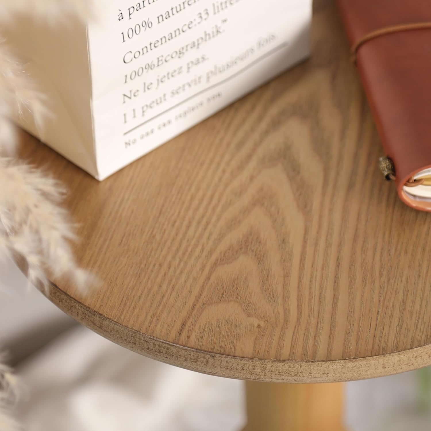 Round Side Table, 11.6 Inch Modern Accent End Table with Pedestal Base, Natural Wood (Natural)