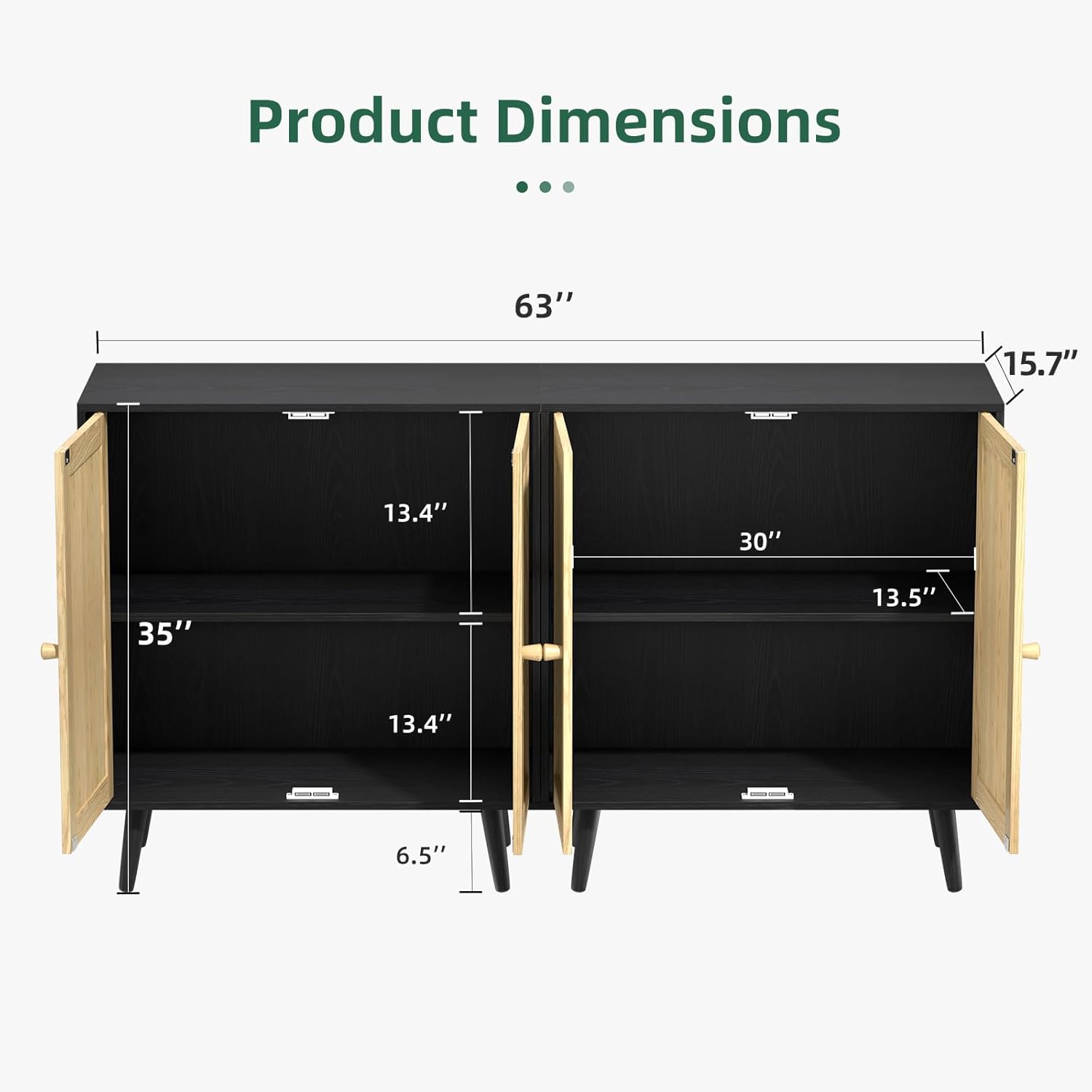 Set of 2 Rattan Sideboard Buffet Cabinets, Accent Cabinets with Adjustable Shelves & Rattan Doors, Ideal for Kitchen & Entryway Storage, Black