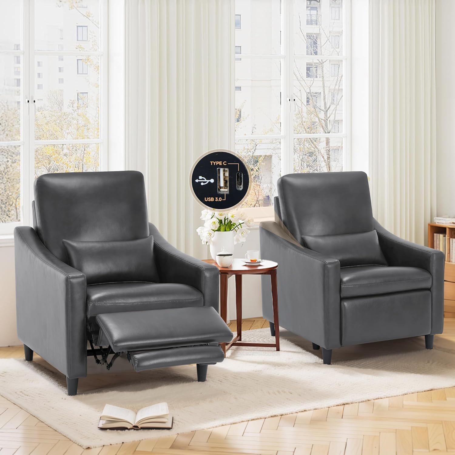 - USB & TYPE-C CHARGING PORTS: Charge your devices directly from your 300lbs reclining chair with USB and Type-C charging ports. Whether you’re relaxing in a wide recliner chair or enjoying your favorite show, this power recliner ensures you're always connected while unwinding.