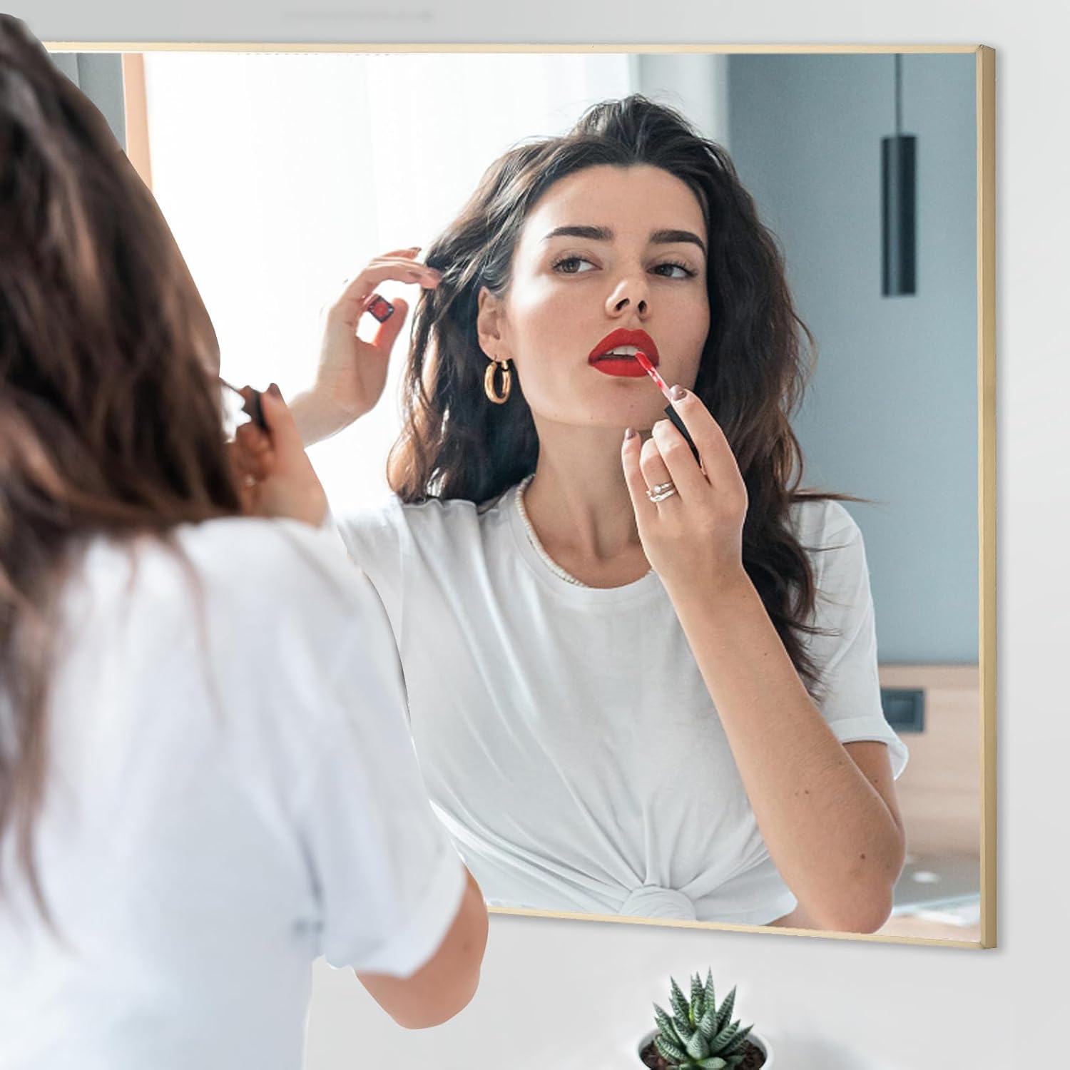 30x36 Inch Gold Bathroom Mirror - Copper-Free Mirror, Aluminum Alloy Frame Vanity Rectangle Wall Mounted Modern Mirror for Bedroom/Living Room/Porch Horizontal or Vertical