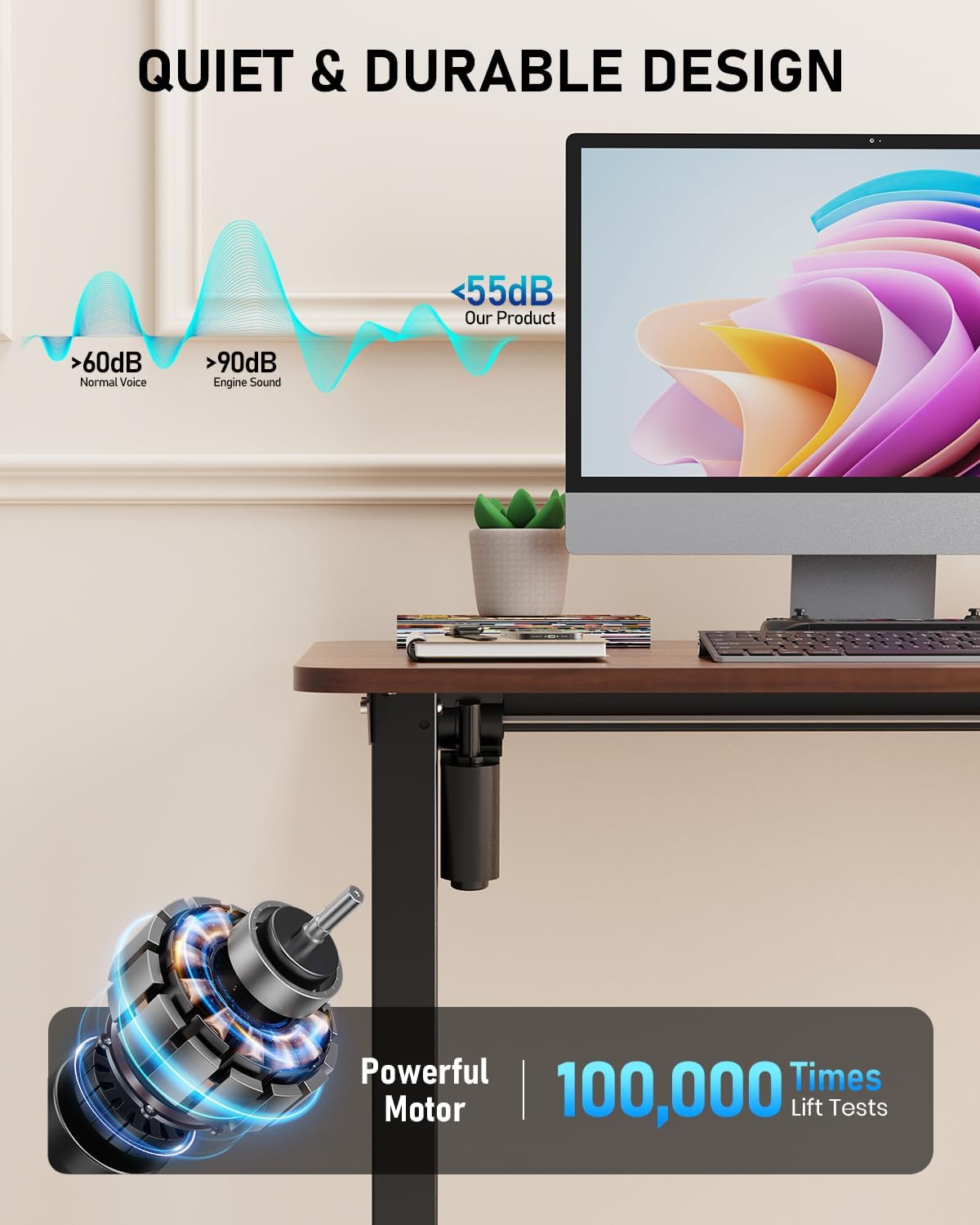 - Smooth Electric Height Adjustment: Go from sitting to standing in one smooth motion! This height adjustable desk features an electric motor and two-stage legs, offering fast and quiet adjustments from 29.9" to 48.4" (≤50 dB) at 25mm/s. Program your ideal heights with 2 memory preset buttons for quick transitions during your workday.