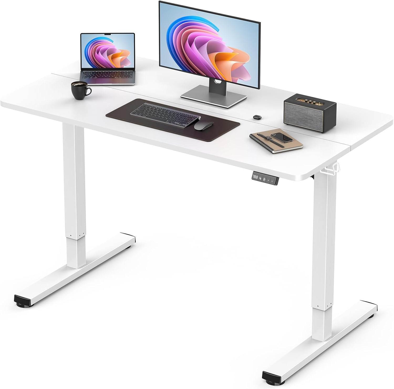 Standing Desk, Small Height Adjustable Electric Stand up Desk, 40" x 24" Sit Stand Computer Home Office Desk with Splice Board, White Frame/White Top