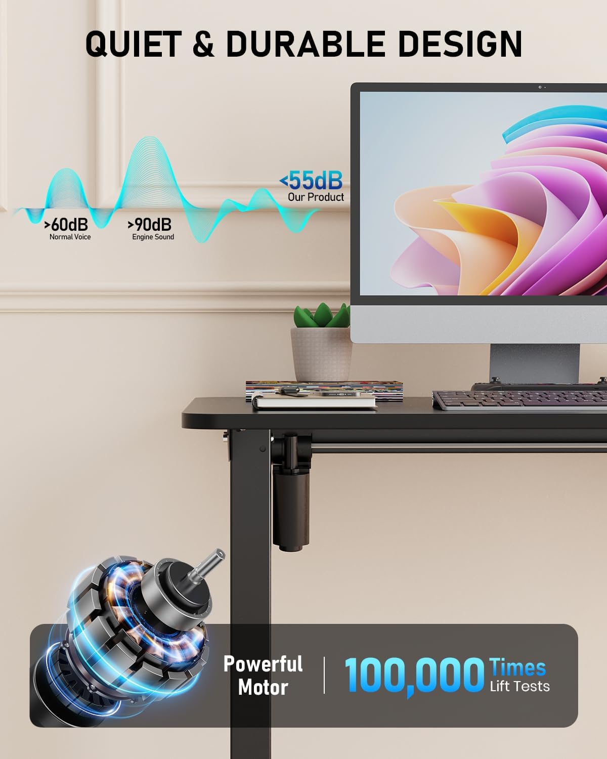 - Smooth Electric Height Adjustment: Go from sitting to standing in one smooth motion! This height adjustable desk features an electric motor and two-stage legs, offering fast and quiet adjustments from 29.9" to 48.4" (≤50 dB) at 25mm/s. Program your ideal heights with 2 memory preset buttons for quick transitions during your workday.