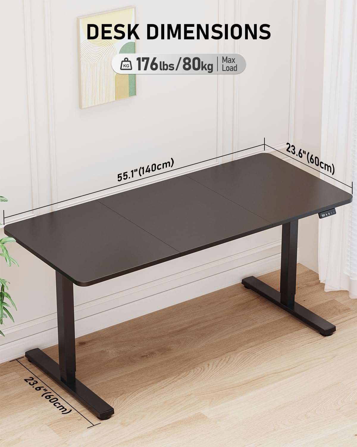 Standing Desk, Large Height Adjustable Electric Stand up Desk, 55 x 24 Inches Sit Stand Home Office Desk, with Splice Board, Black Frame/Black Top