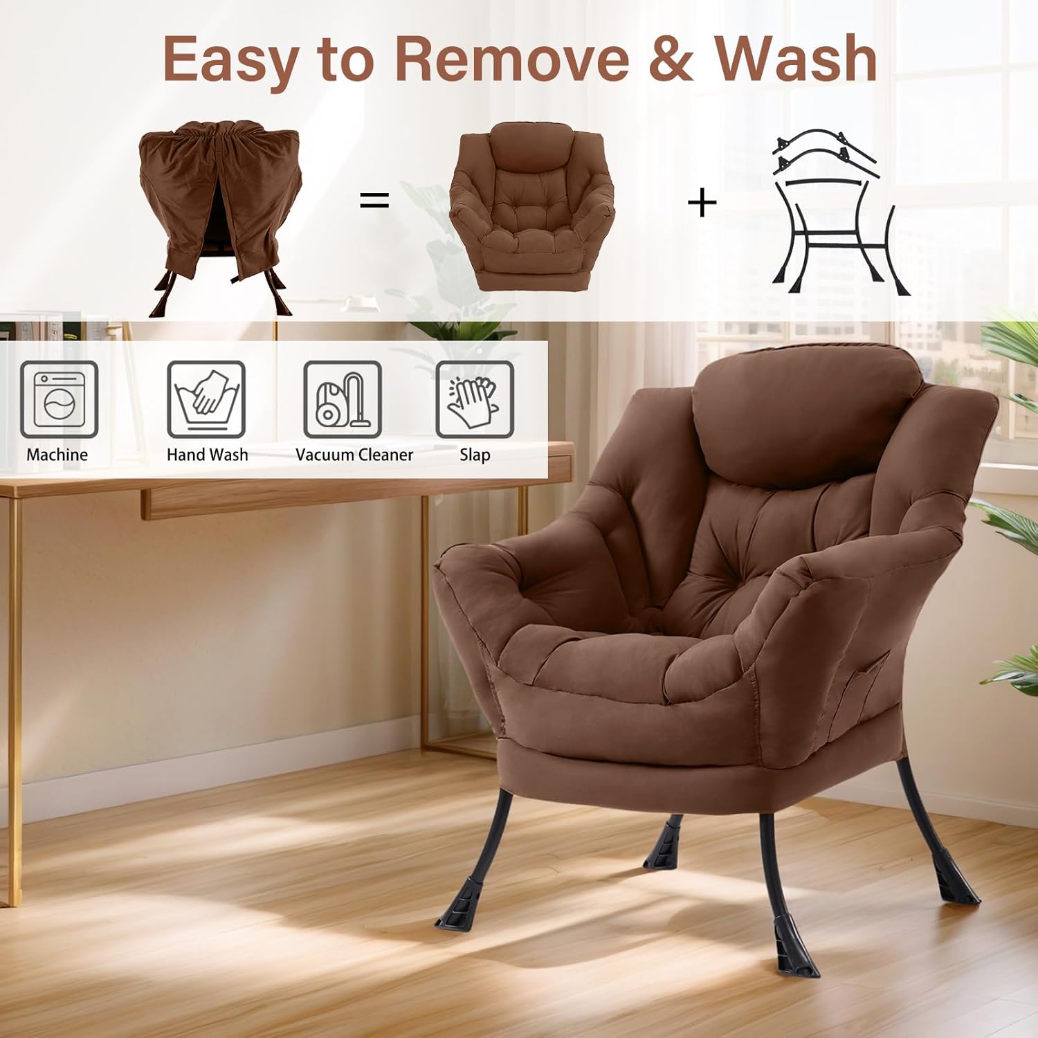 Lazy Chair for Living Room, Modern Accent Chairs with Armrests, Comfy Lounge Chair with Side Pocket, Cozy Lazy Sofa for Reading, Balcony, Bedroom, Dorm, Small Spaces (Dark Brown)